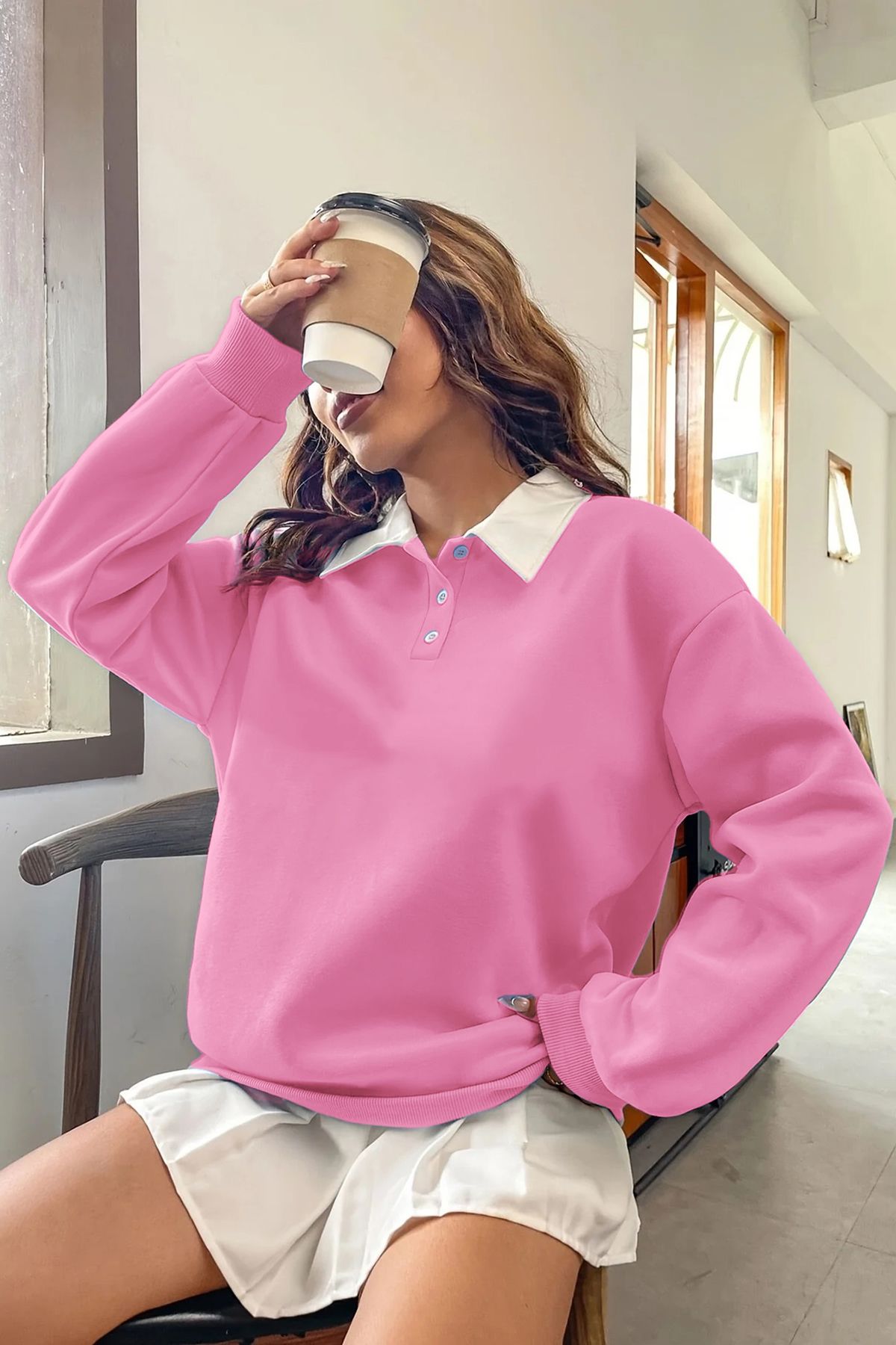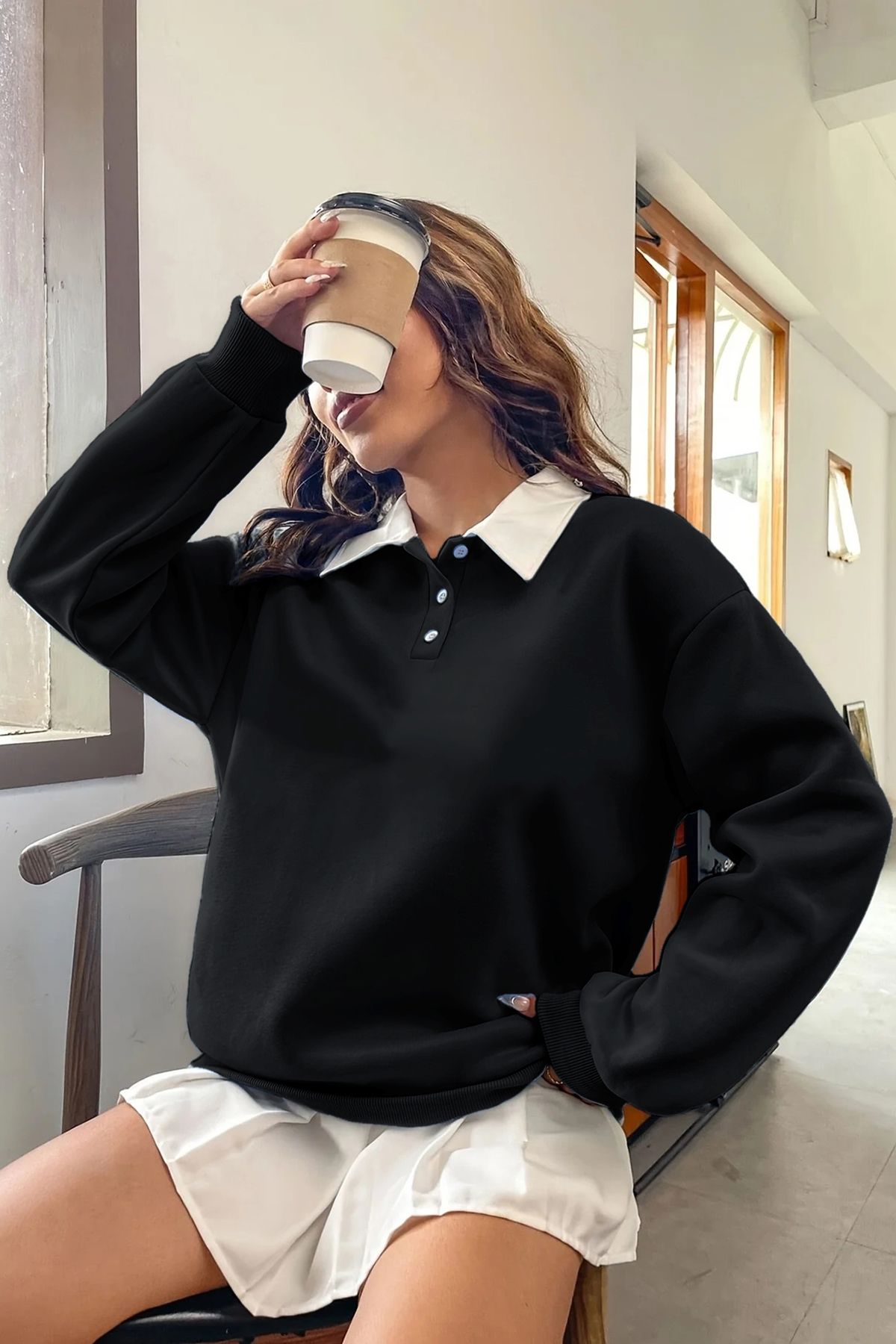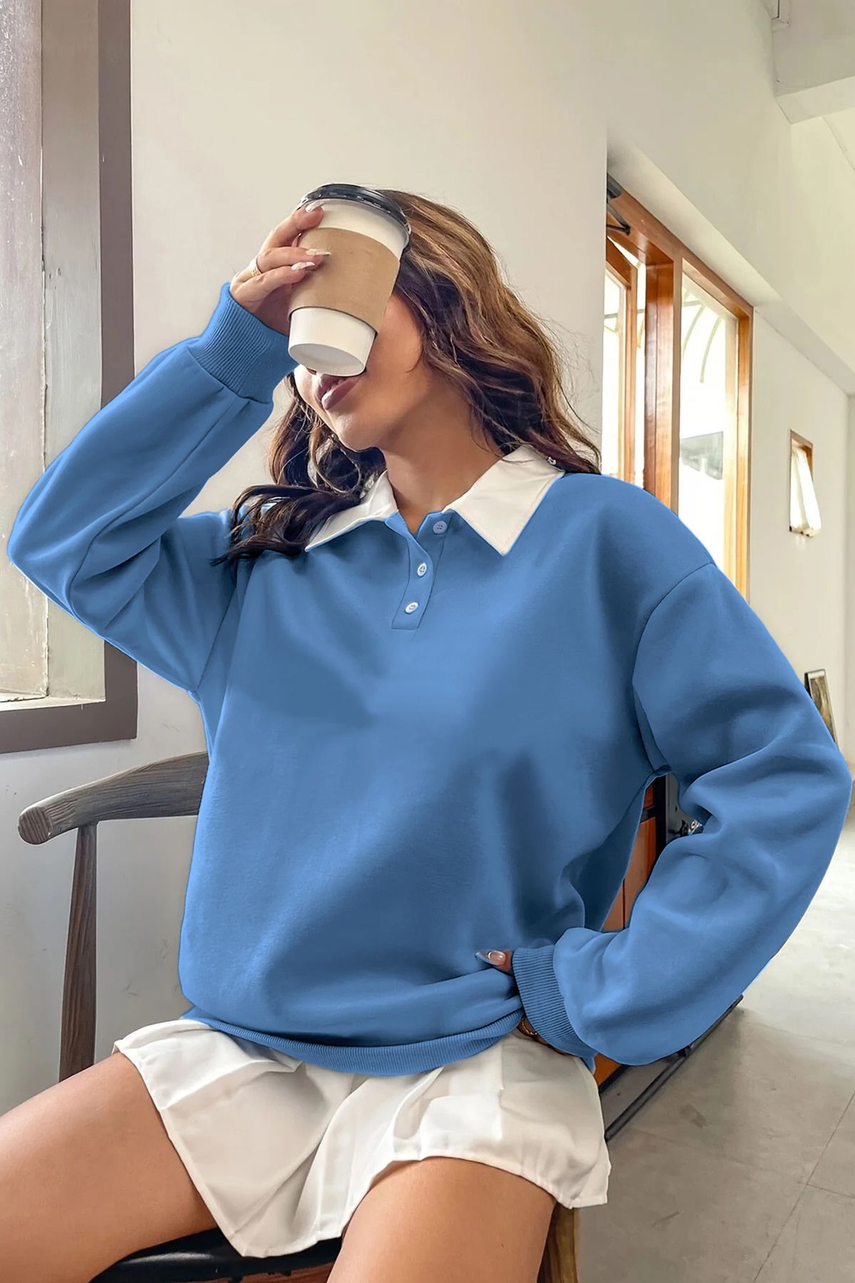Kadın Retro Renk Bloklu Pamuklu Gömlek Yaka Sweatshirt Kadın Retro Renk Bloklu Pamuklu Gömlek Yaka Sweatshirt 19870024 2XL