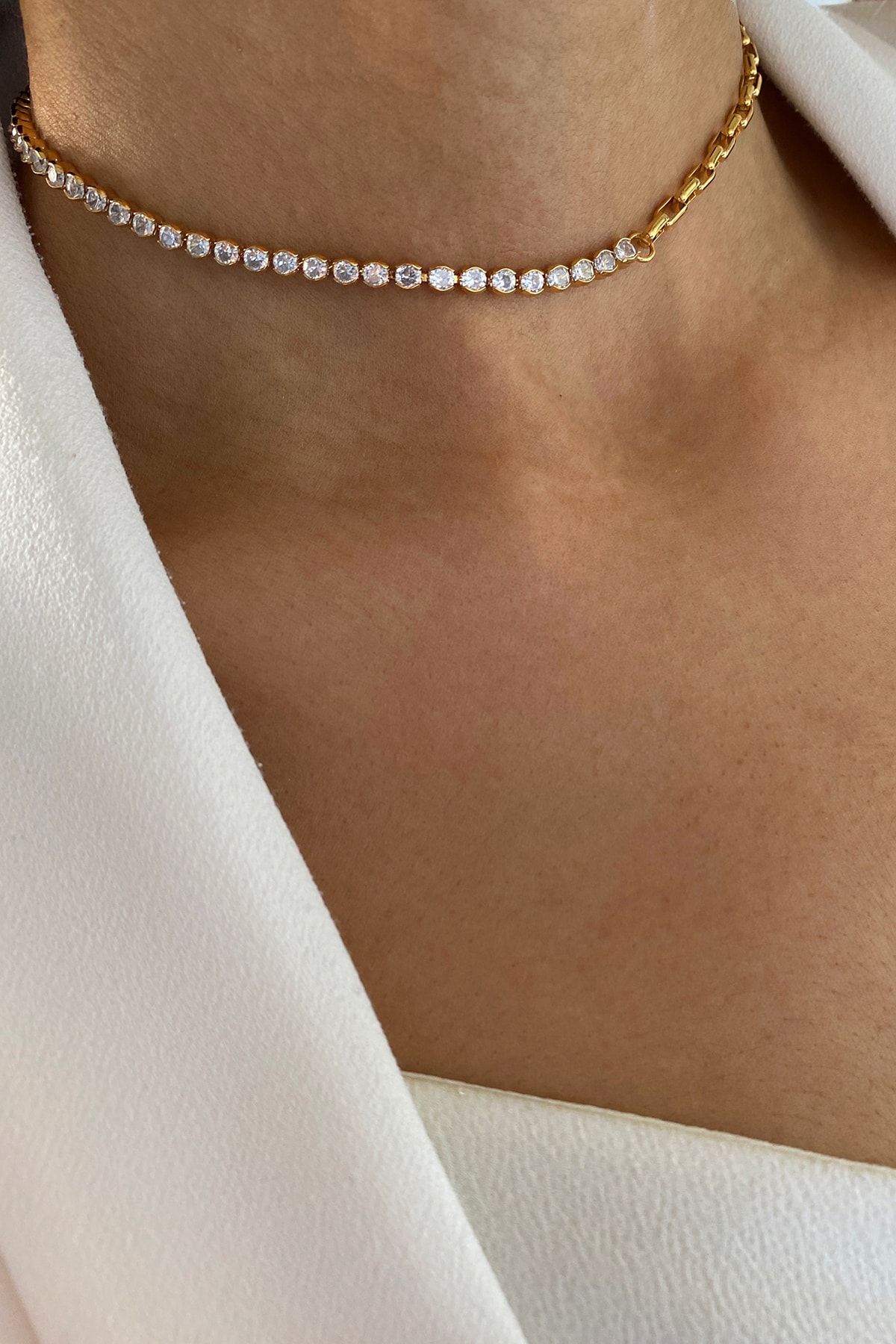 Altın Renk Taşlı Choker Su Yolu Kolye Altın Renk Taşlı Choker Su Yolu Kolye TKSTR-RNKK-TSL-KLY-S-YL47 تک سایز