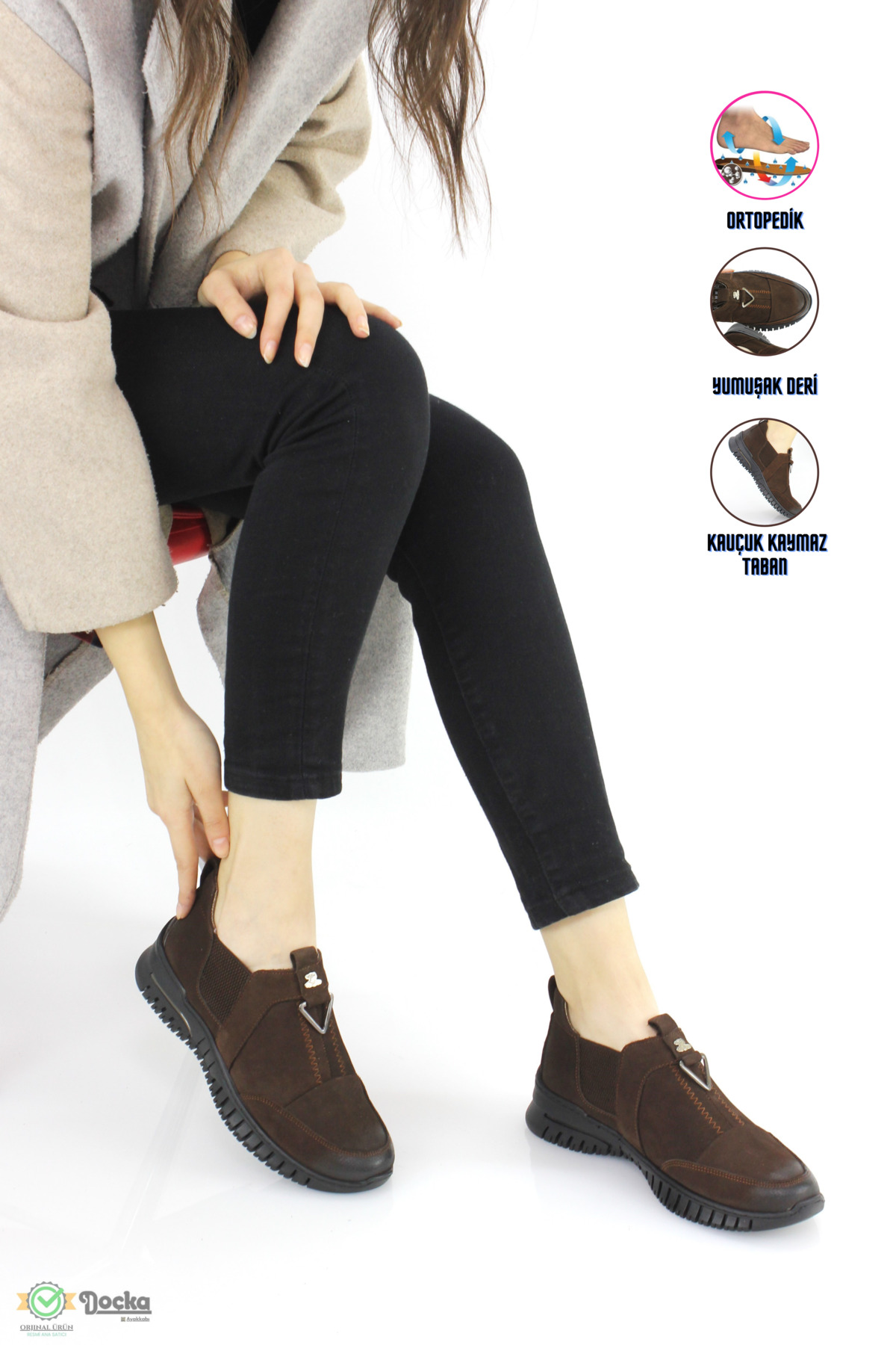 Kadın Hakiki Deri Ortopedik Bağsız Ayakkabı M25/KA475 Kadın Hakiki Deri Ortopedik Bağsız Ayakkabı M25/KA475 40