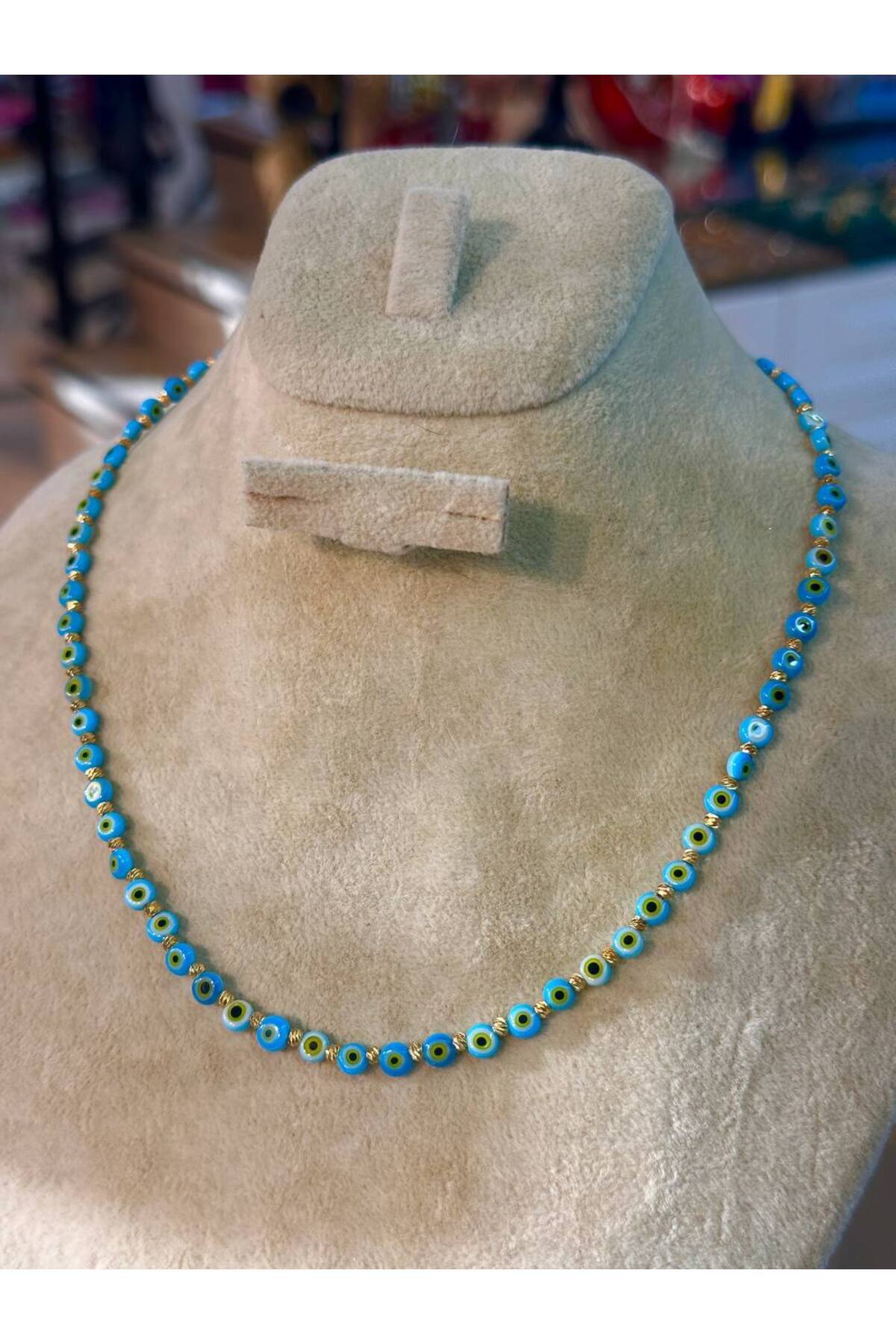 Gümüş Renk Rodyum Kaplama Kristal Taşlı Mavi Cam Boncuk Detaylı Haç Sallantılı Çift Sıra Kolye Gümüş Renk Rodyum Kaplama Kristal Taşlı Mavi Cam Boncuk Detaylı Haç Sallantılı Çift Sıra Kolye E1246 تک سایز