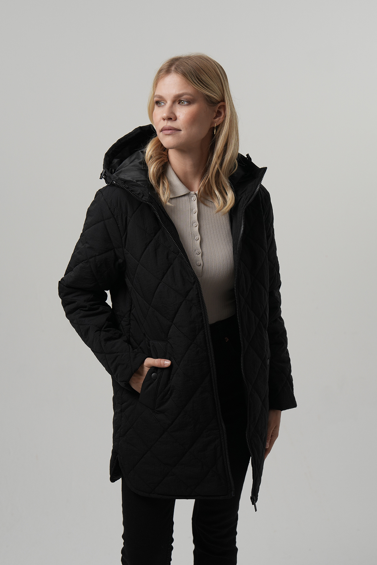 Kapitone Mont, kapşonlu, cepli, oversize, baklava desen. Kapitone Mont, kapşonlu, cepli, oversize, baklava desen. 1409245001202 42