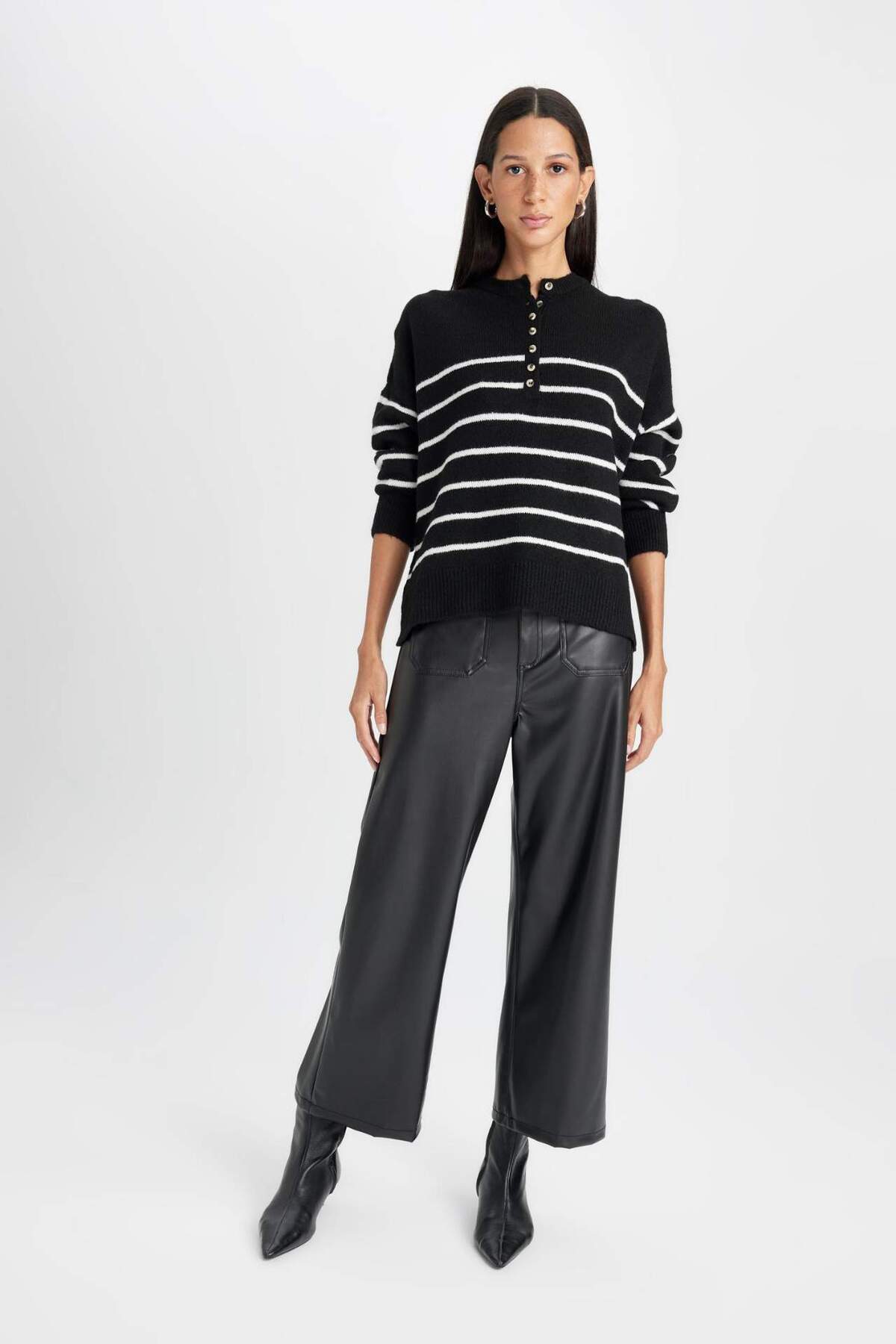 Suni Deri Pantolon Culotte Çift Cepli Yüksek Bel Geniş Paça D4806AX24AU Suni Deri Pantolon Culotte Çift Cepli Yüksek Bel Geniş Paça D4806AX24AU 42