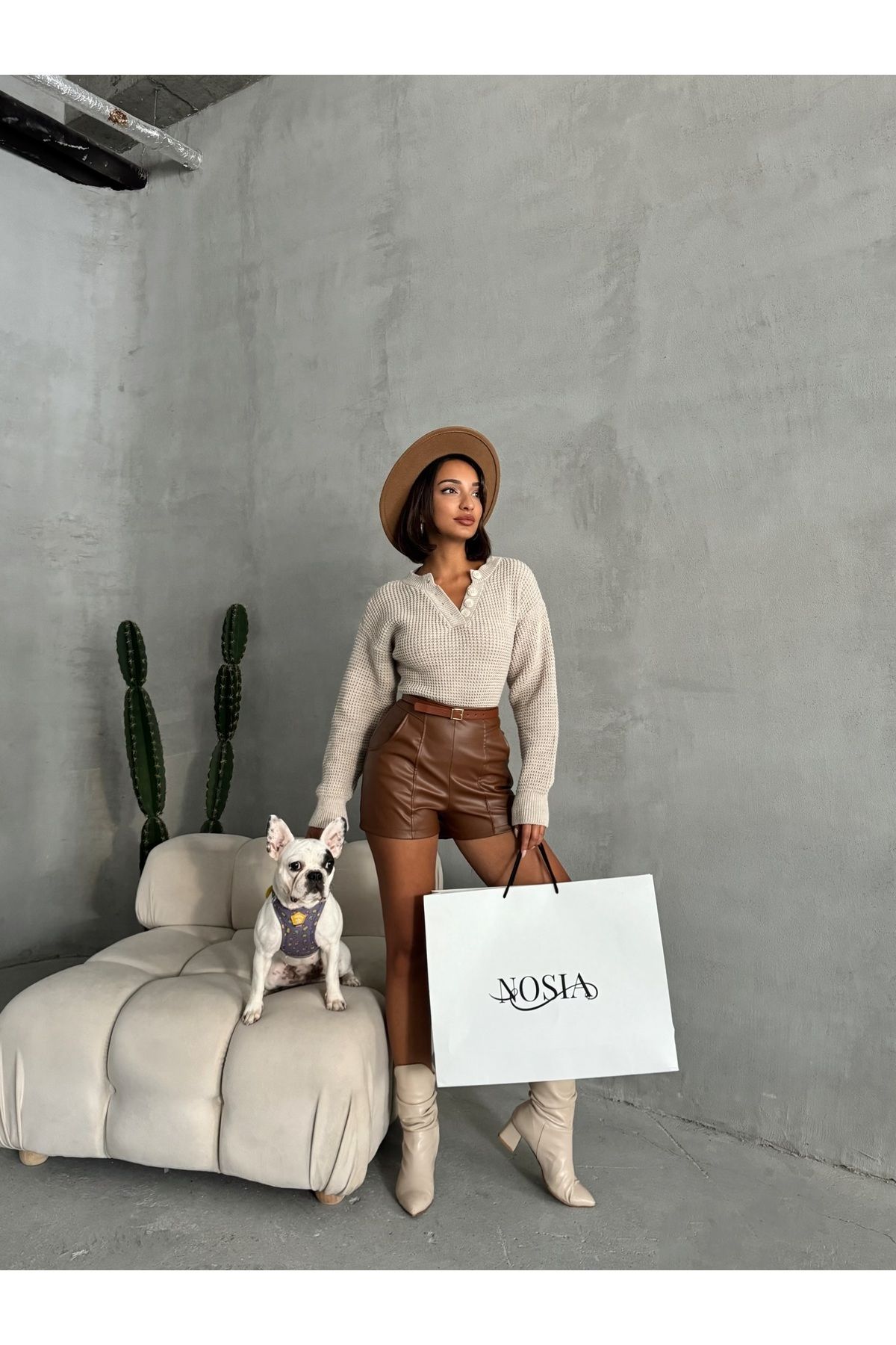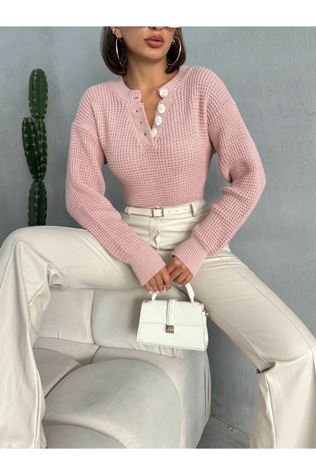 Kadın Düğmeli Dokulu Uzun Kol Triko Kazak Kadın Düğmeli Dokulu Uzun Kol Triko Kazak NFDK1A 2XL