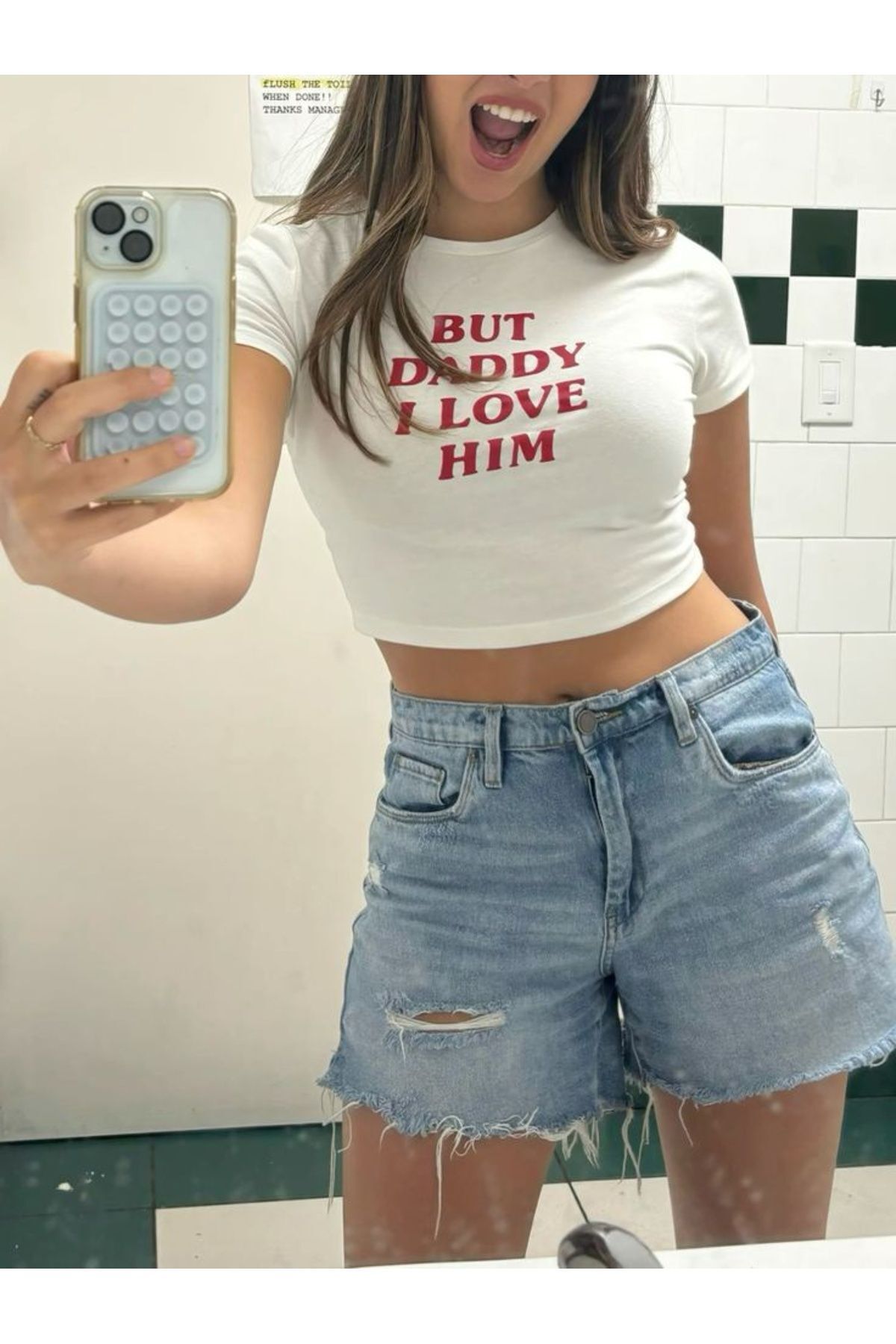 Y2k But Daddy I Love Him Baskılı Crop Baby Tee Y2k But Daddy I Love Him Baskılı Crop Baby Tee MEAGYM059 XL