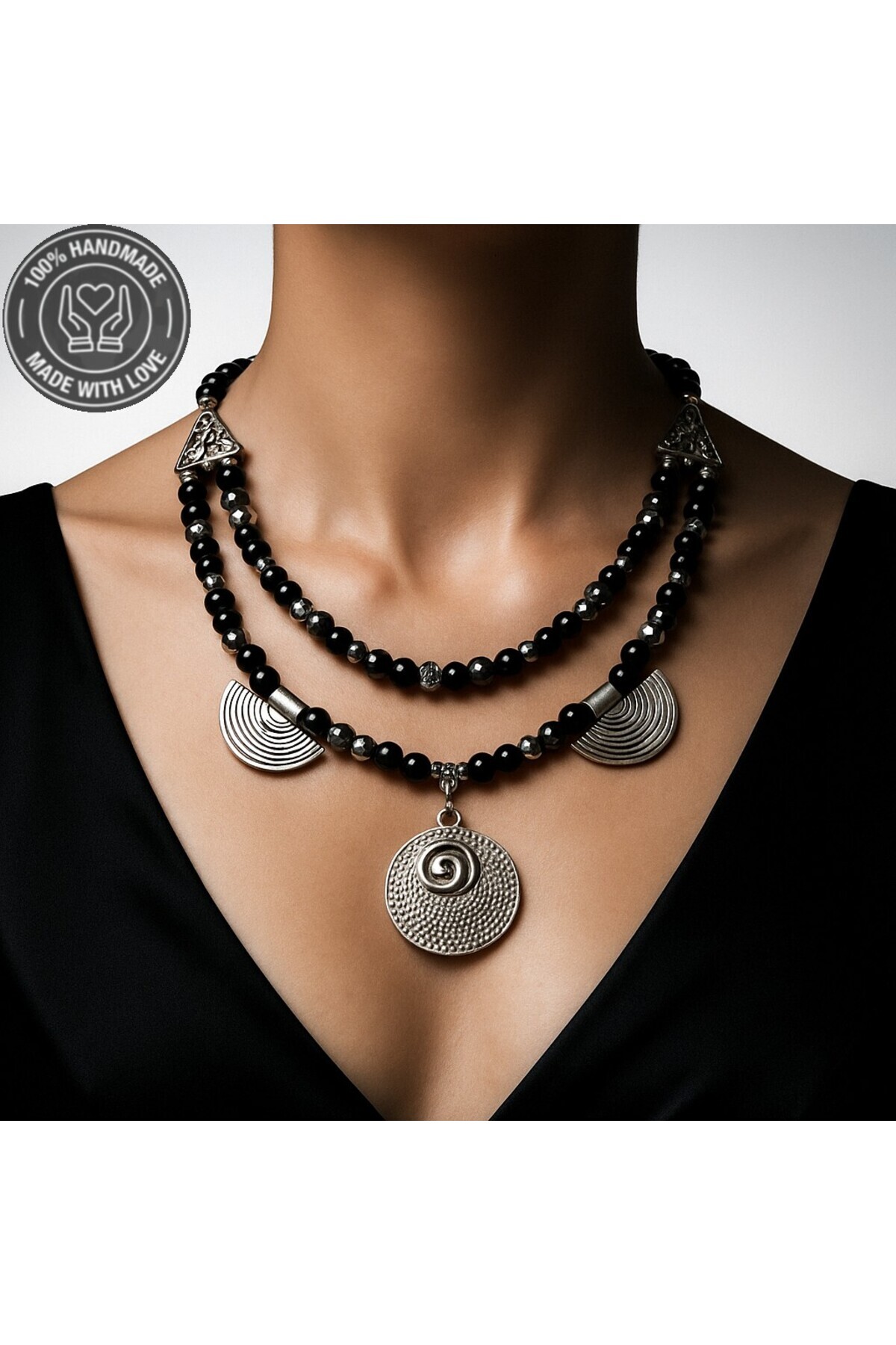Oniks Hematit Kristal 2 Sıralı Cesaret Güç Ve Nazardan Korunma Kolyesi Oniks Hematit Kristal 2 Sıralı Cesaret Güç Ve Nazardan Korunma Kolyesi 296 M