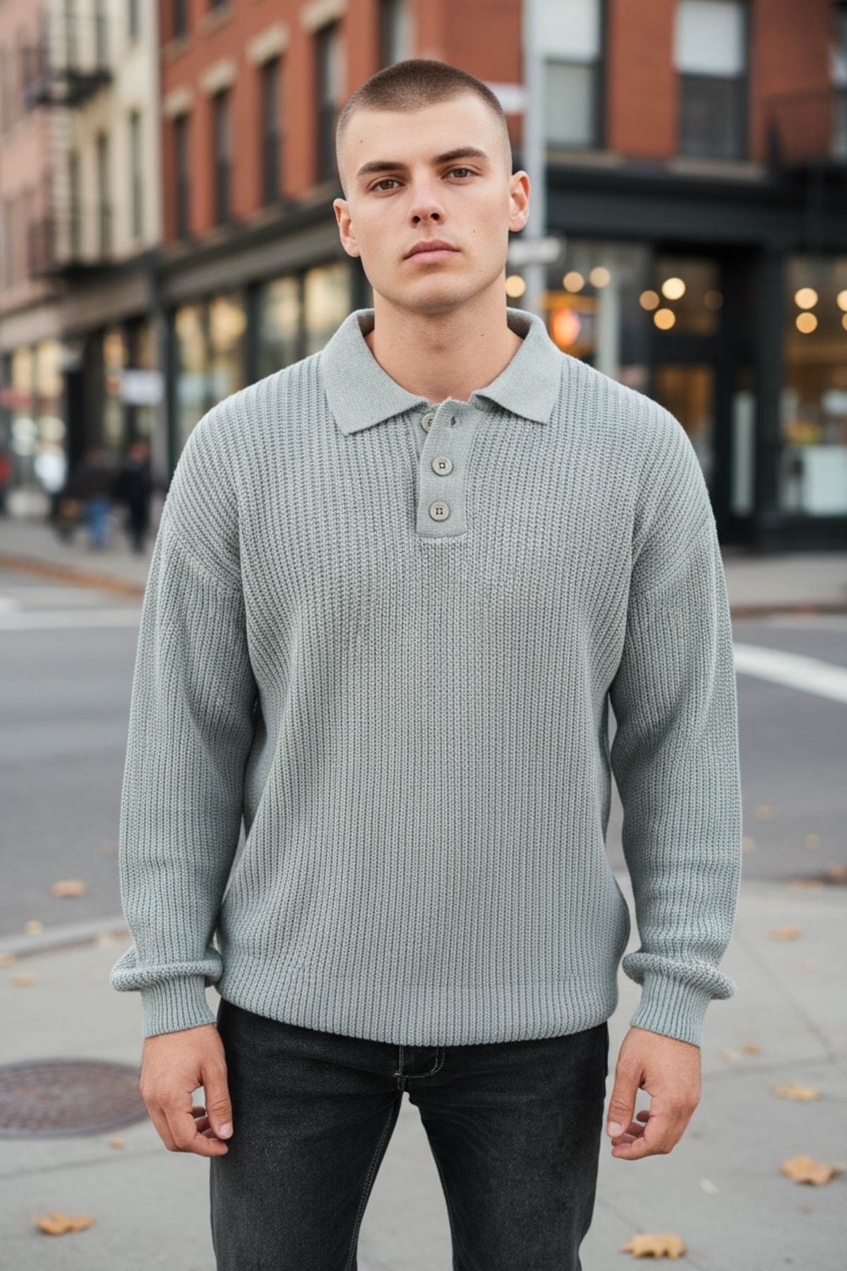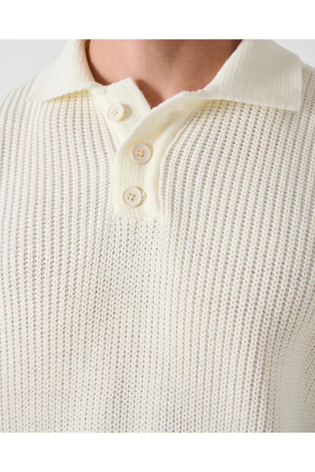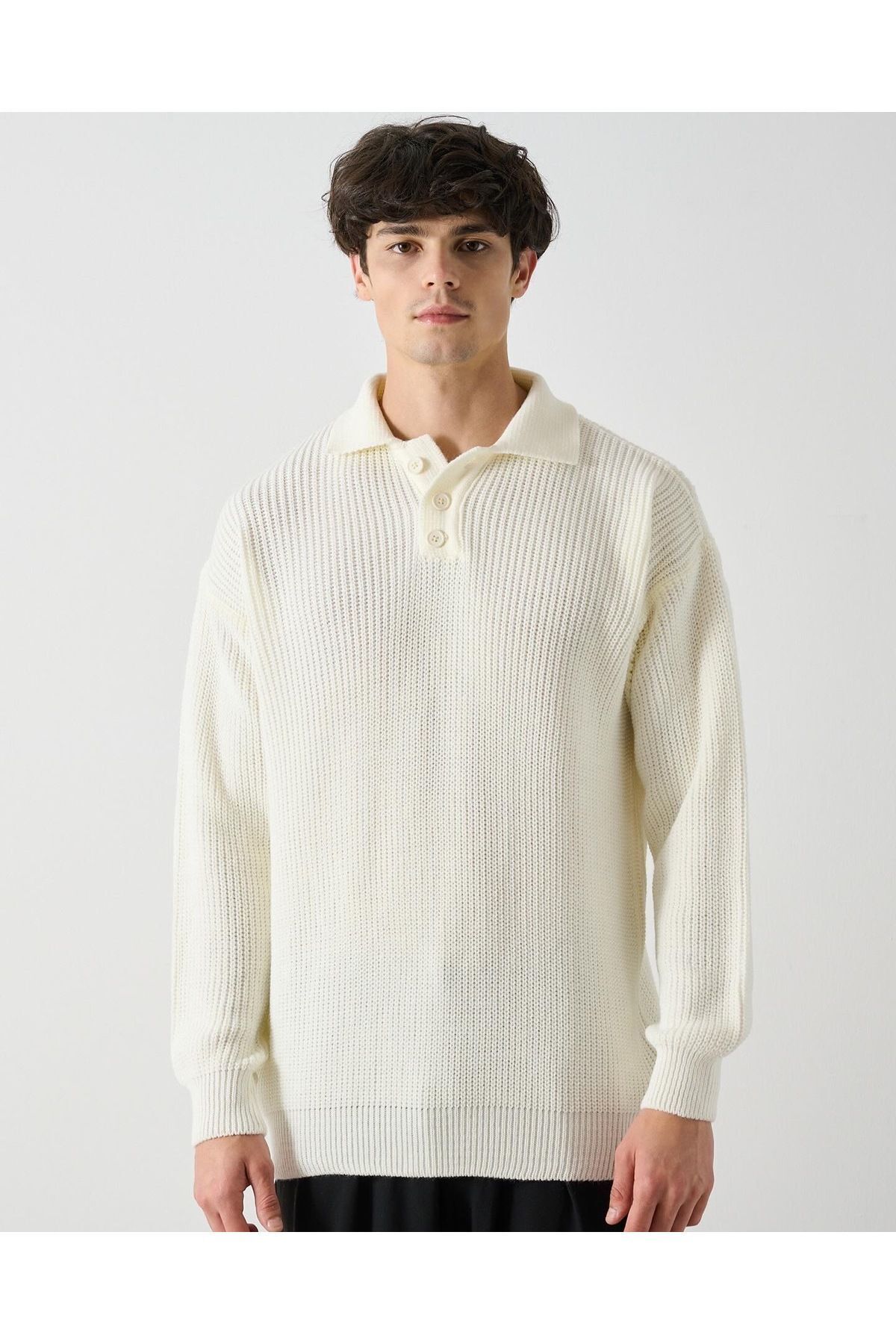 Yakalı Üç Düğmeli Ekru Fitilli Oversize Kazak Yakalı Üç Düğmeli Ekru Fitilli Oversize Kazak K23066 XL
