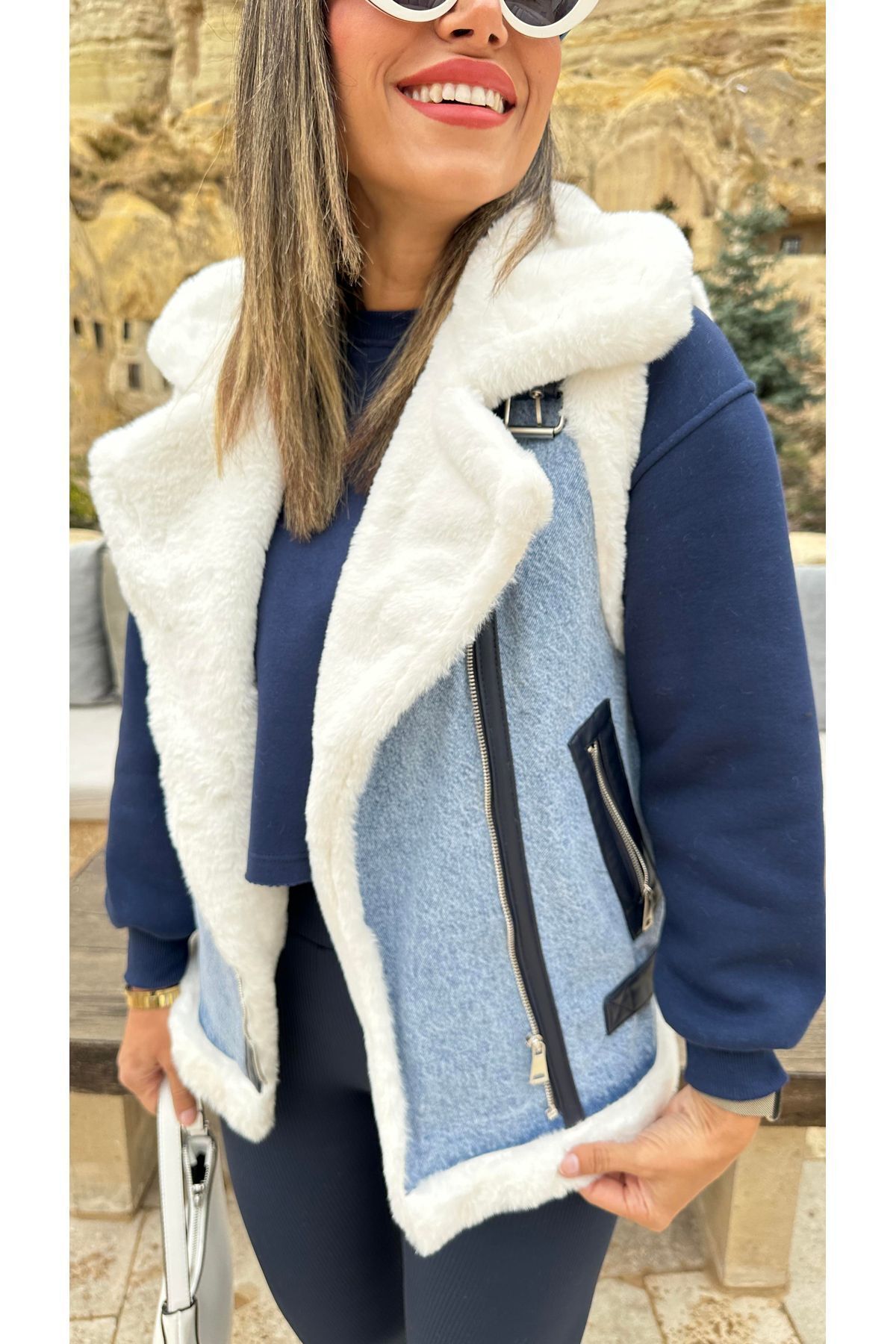 ROBİN Kadın Kadın Çapraz Fermuarlı Içi Full Kürklü Kot Yelek ROBİN Kadın Kadın Çapraz Fermuarlı Içi Full Kürklü Kot Yelek 99088 40