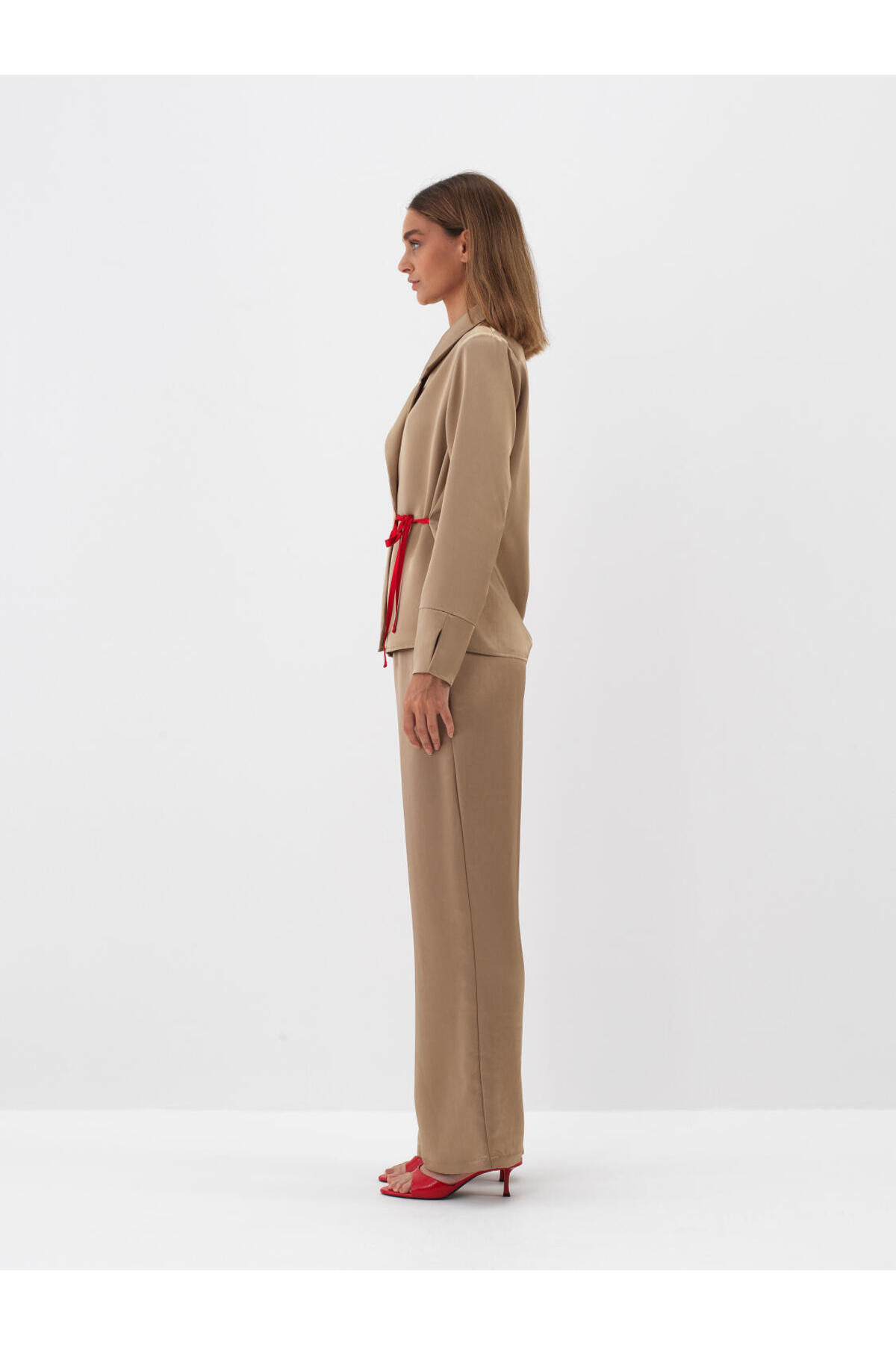 Kadın Camel Saten Belden Bağlamalı Gömlek Kadın Camel Saten Belden Bağlamalı Gömlek 25KB08751082 M