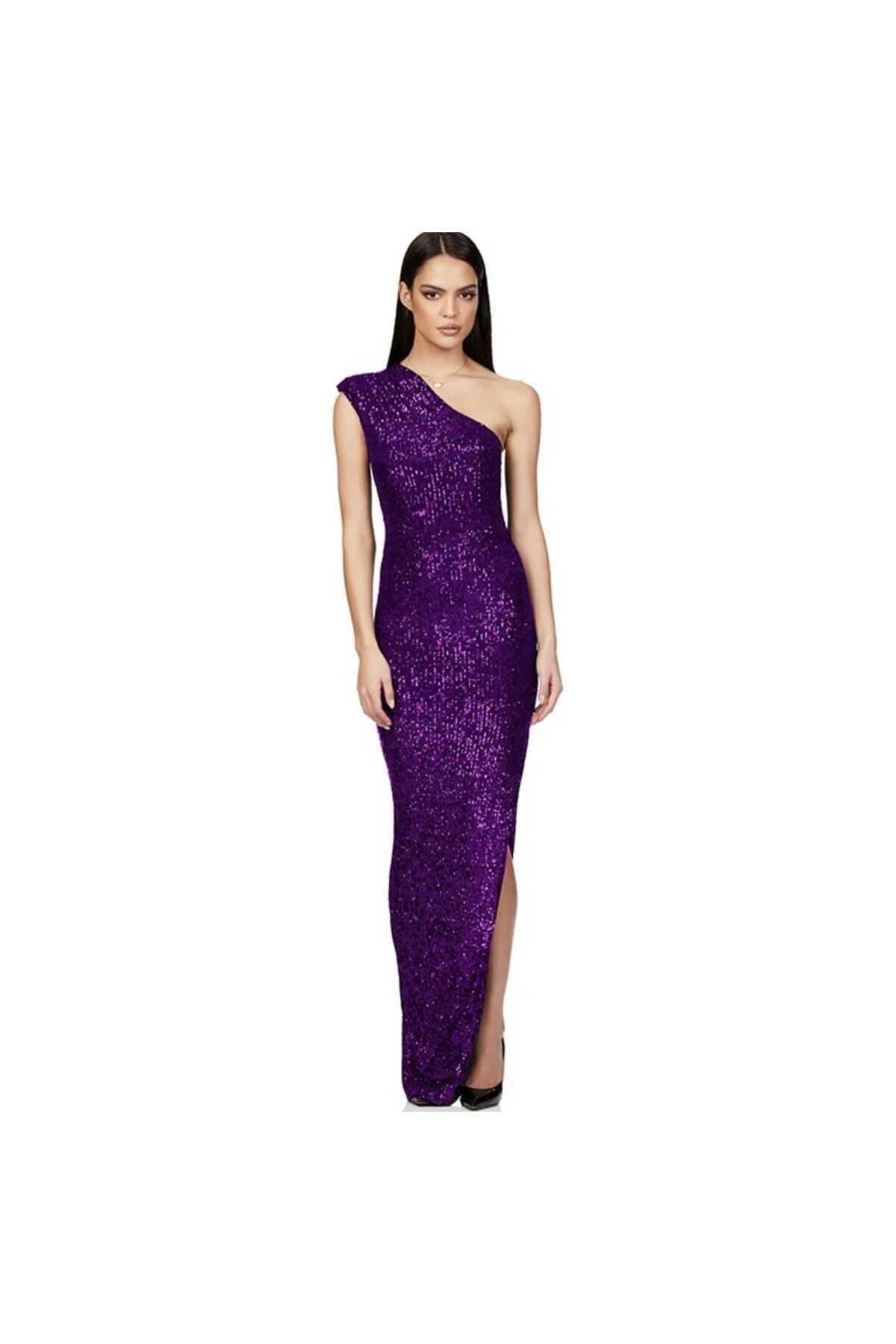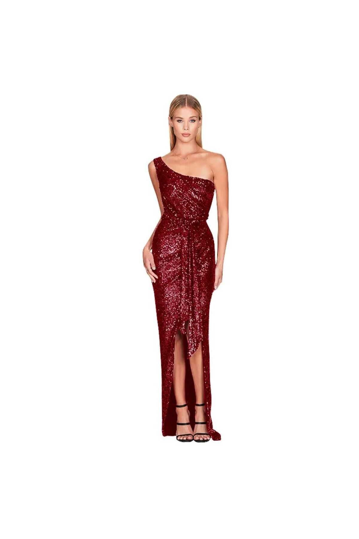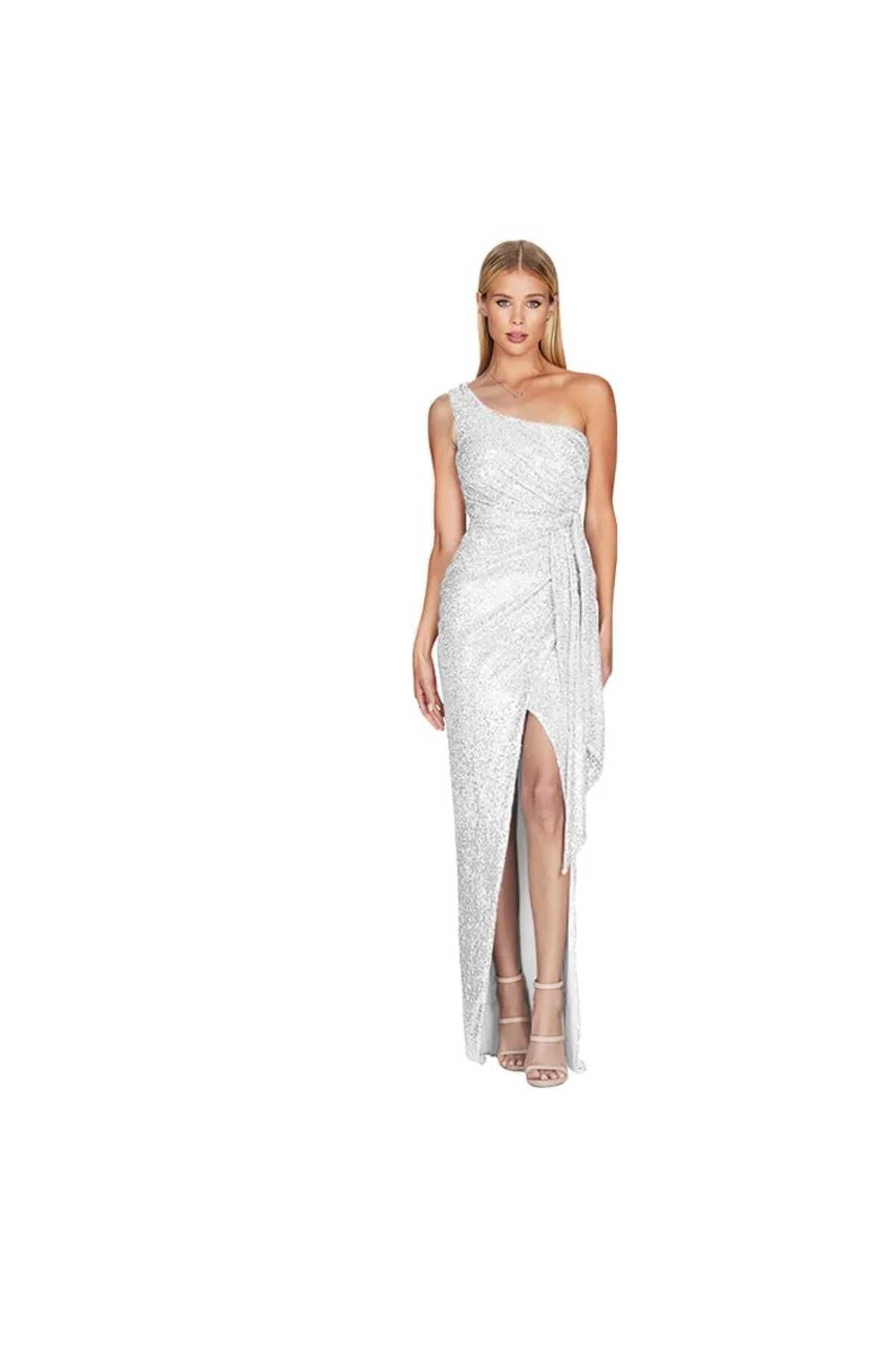 TEK OMUZLU YIRTMAÇLI UZUN PUL PAYET ABİYE ELBİSE TEK OMUZLU YIRTMAÇLI UZUN PUL PAYET ABİYE ELBİSE 350 44