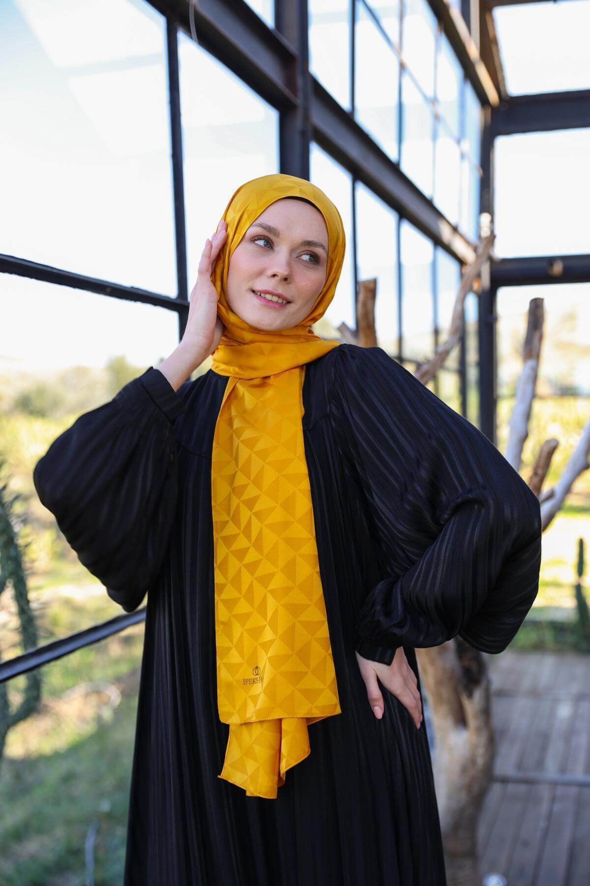 Safran Zikzak Desen Parlak Jakar Şal Safran Zikzak Desen Parlak Jakar Şal JKRMNC0019 75 x 185