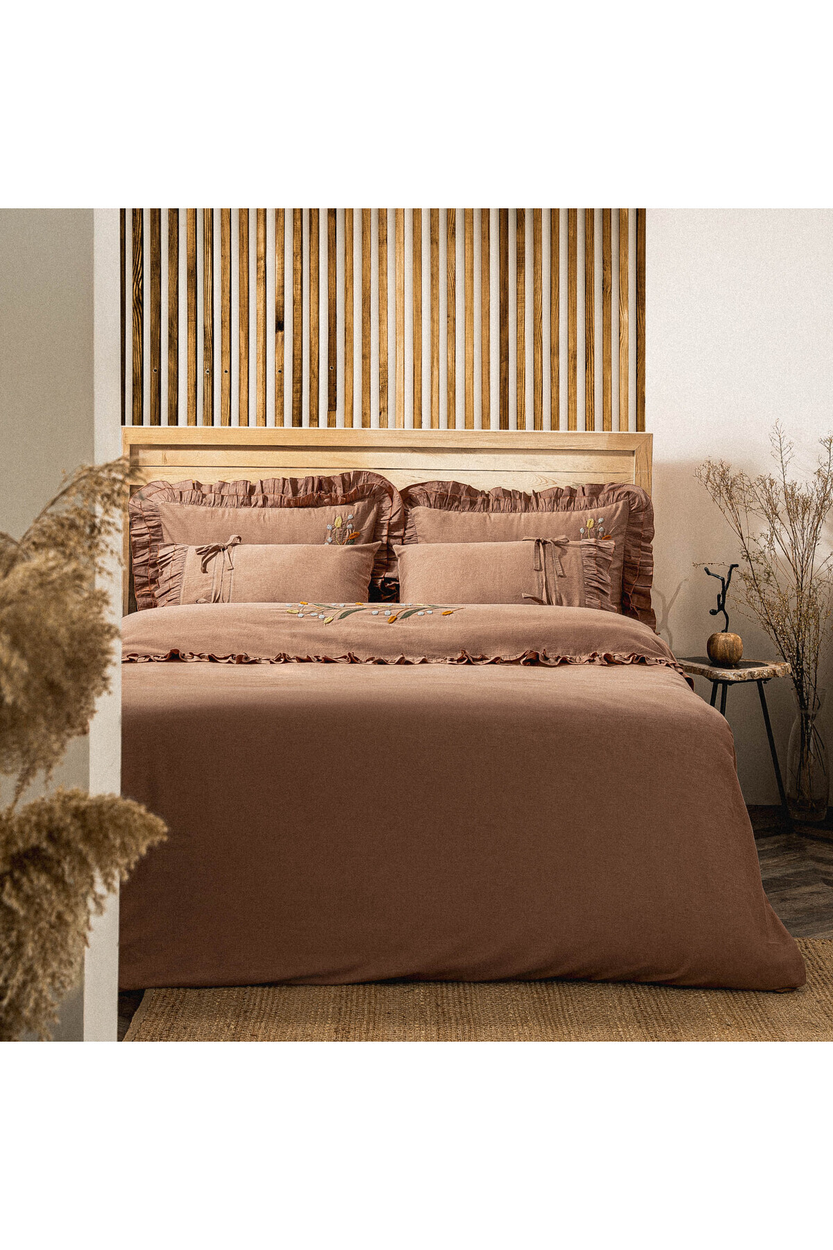Farah Çift Kişilik Nevresim Takımı %100 Organik Pamuk Saten Parça Boya El Nakışlı Kahverengi 200x220 Farah Çift Kişilik Nevresim Takımı %100 Organik Pamuk Saten Parça Boya El Nakışlı Kahverengi 200x220 NVRFRH200x220 تک سایز