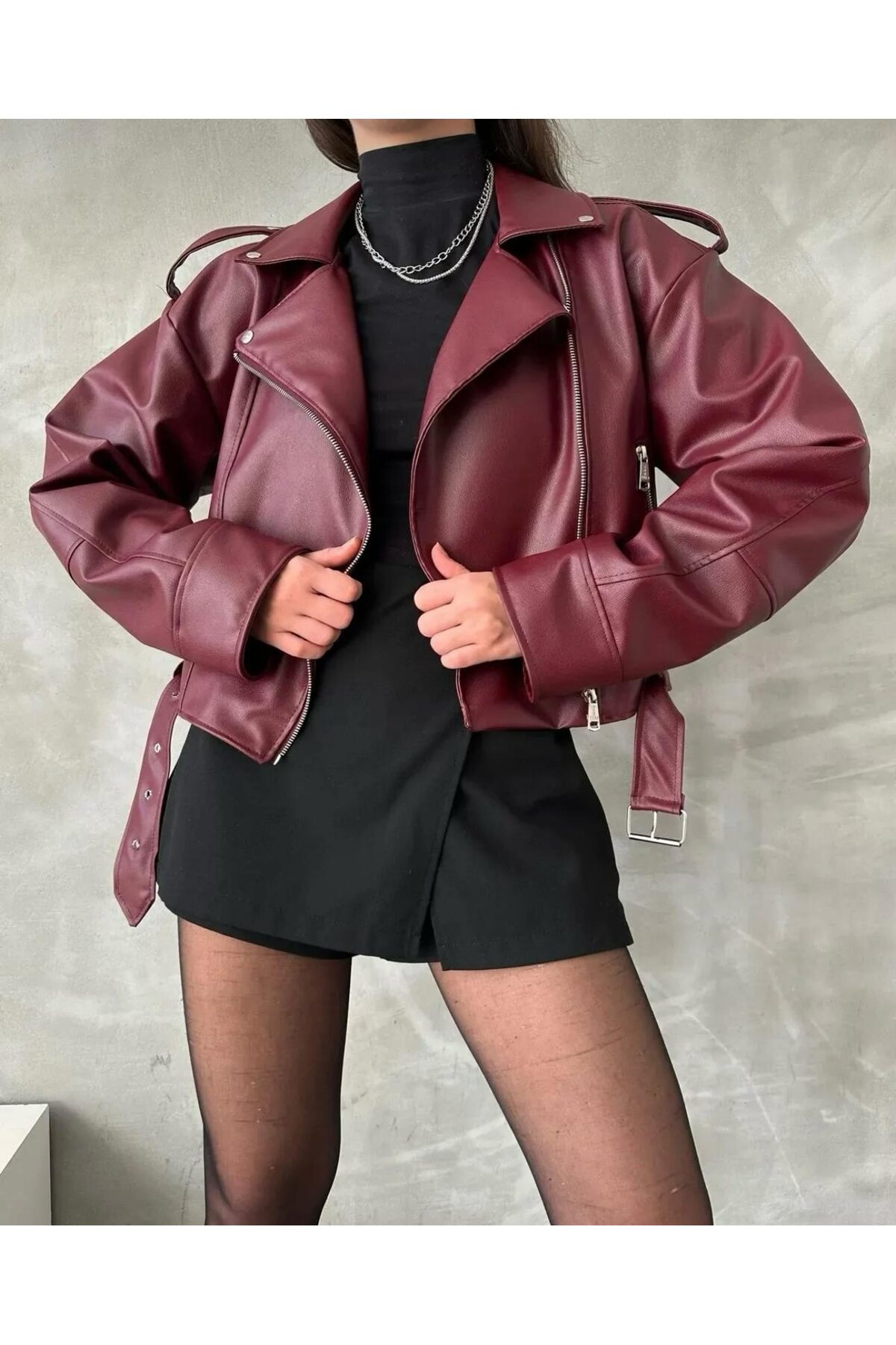 Trend Oversıze Bomber Kemerli Deri Tarz Ceket Trend Oversıze Bomber Kemerli Deri Tarz Ceket bqr-000110 L