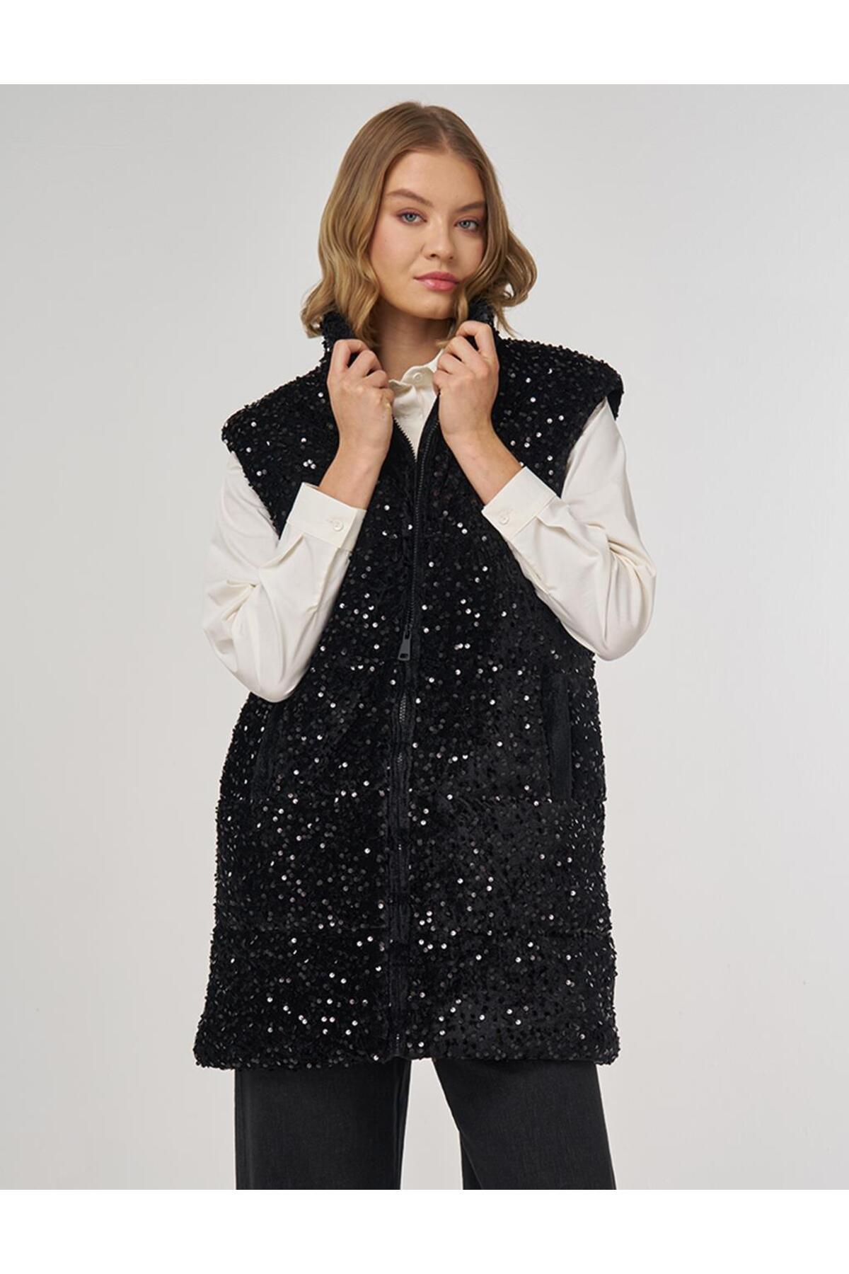 Suni Deri Garnili Peluş Yelek Siyah Suni Deri Garnili Peluş Yelek Siyah KA-A24-20005 44