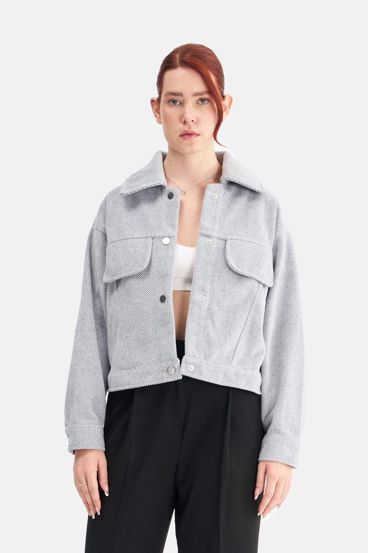 Kadın Kaşe Geniş Yaka Crop Ceket Kadın Kaşe Geniş Yaka Crop Ceket msf-kgyck L