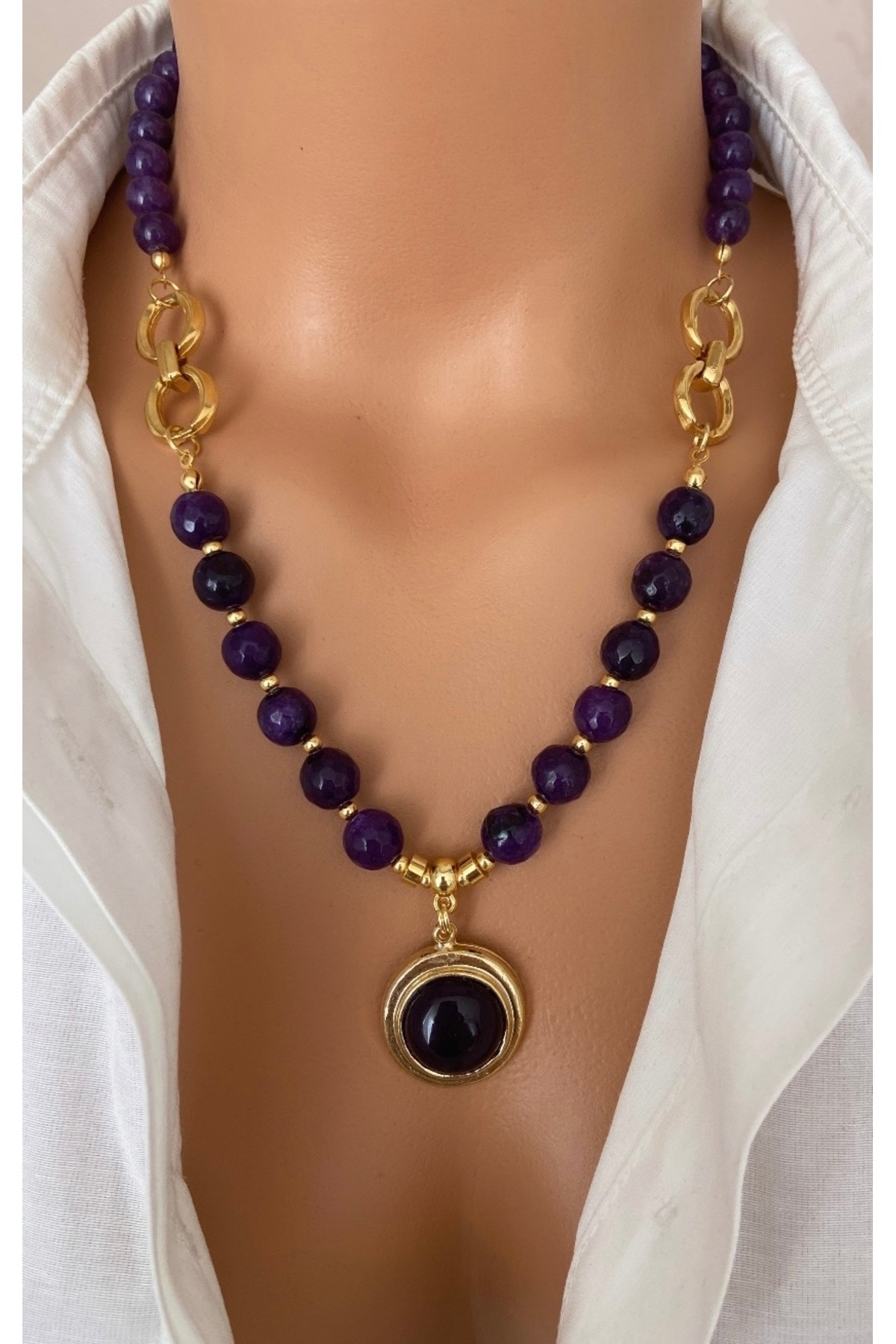 Altın Kaplama Ve Doğal Taş Mor Ametist Taşı Halka Detay Altın Kaplama Çerçeveli Kadın Kolye Altın Kaplama Ve Doğal Taş Mor Ametist Taşı Halka Detay Altın Kaplama Çerçeveli Kadın Kolye ametisthalkalıkolye M