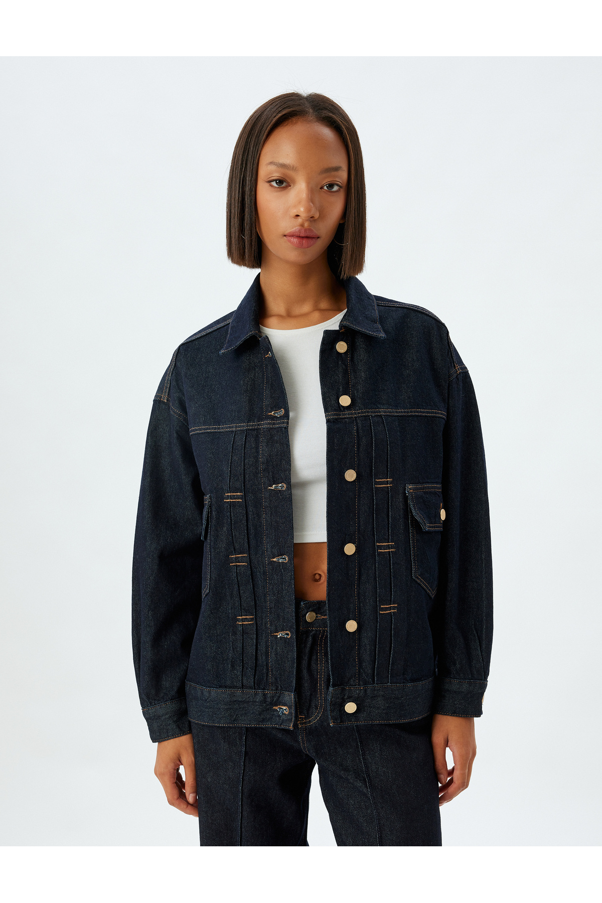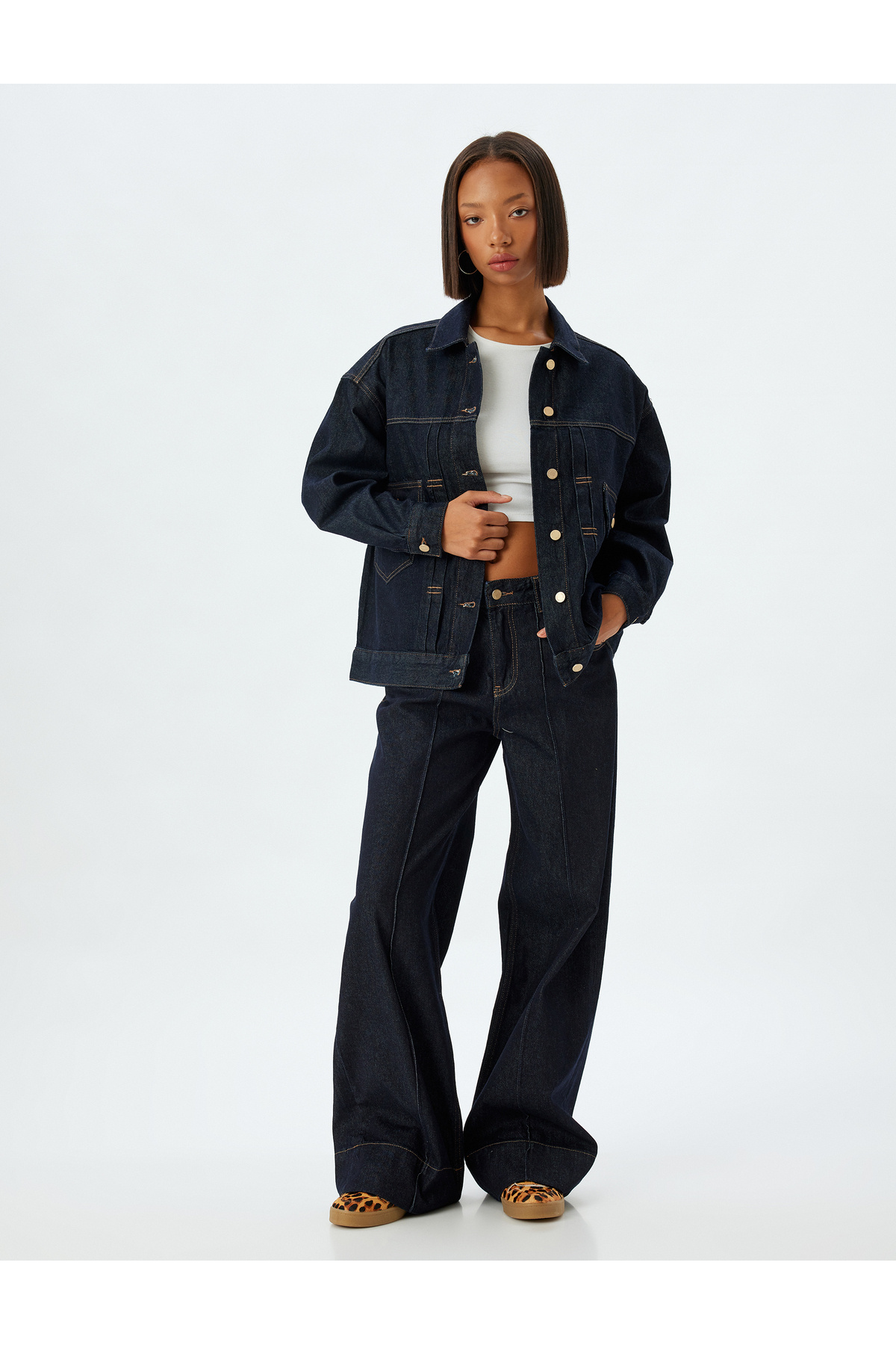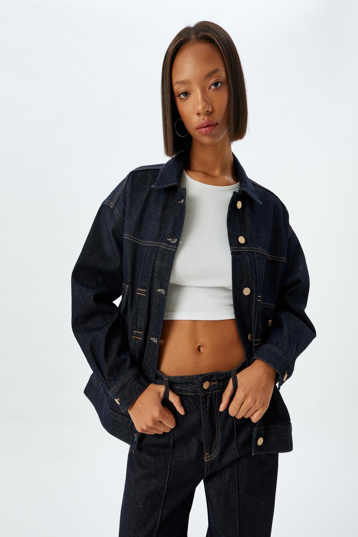 Oversize Kot Ceket Dikiş Detaylı Klasik Yaka Düğmeli Cepli Oversize Kot Ceket Dikiş Detaylı Klasik Yaka Düğmeli Cepli 5WAL50055MD 42