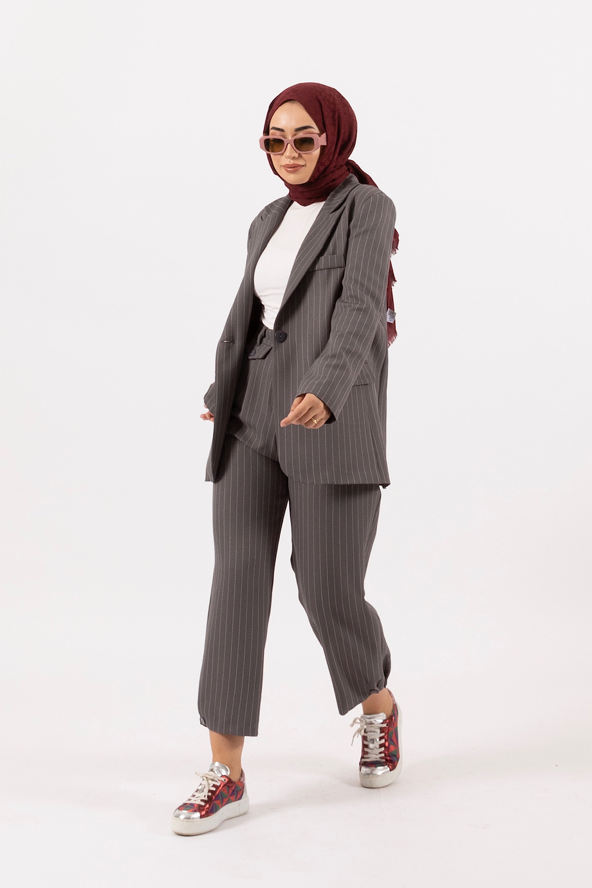 Paça Detay Çizgili Takım Antrasit Paça Detay Çizgili Takım Antrasit 24K6183 42