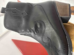 Western Kovboy Kadın Suni Deri Siyah Nakışlı Kısa Bot Western Kovboy Kadın Suni Deri Siyah Nakışlı Kısa Bot 187 43