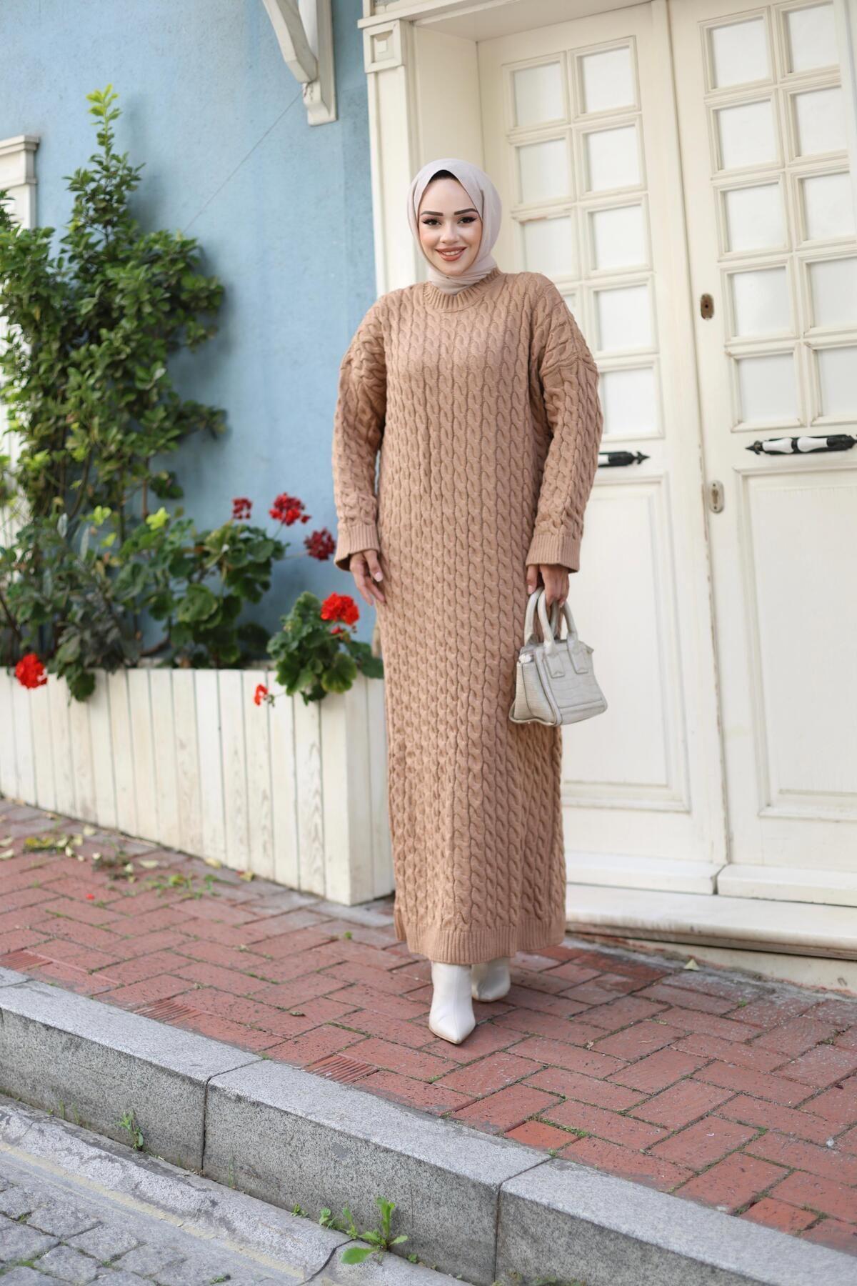 KADIN ÖRGÜLÜ TRİKO TESETTÜR ELBİSE KADIN ÖRGÜLÜ TRİKO TESETTÜR ELBİSE 4114 LSTD