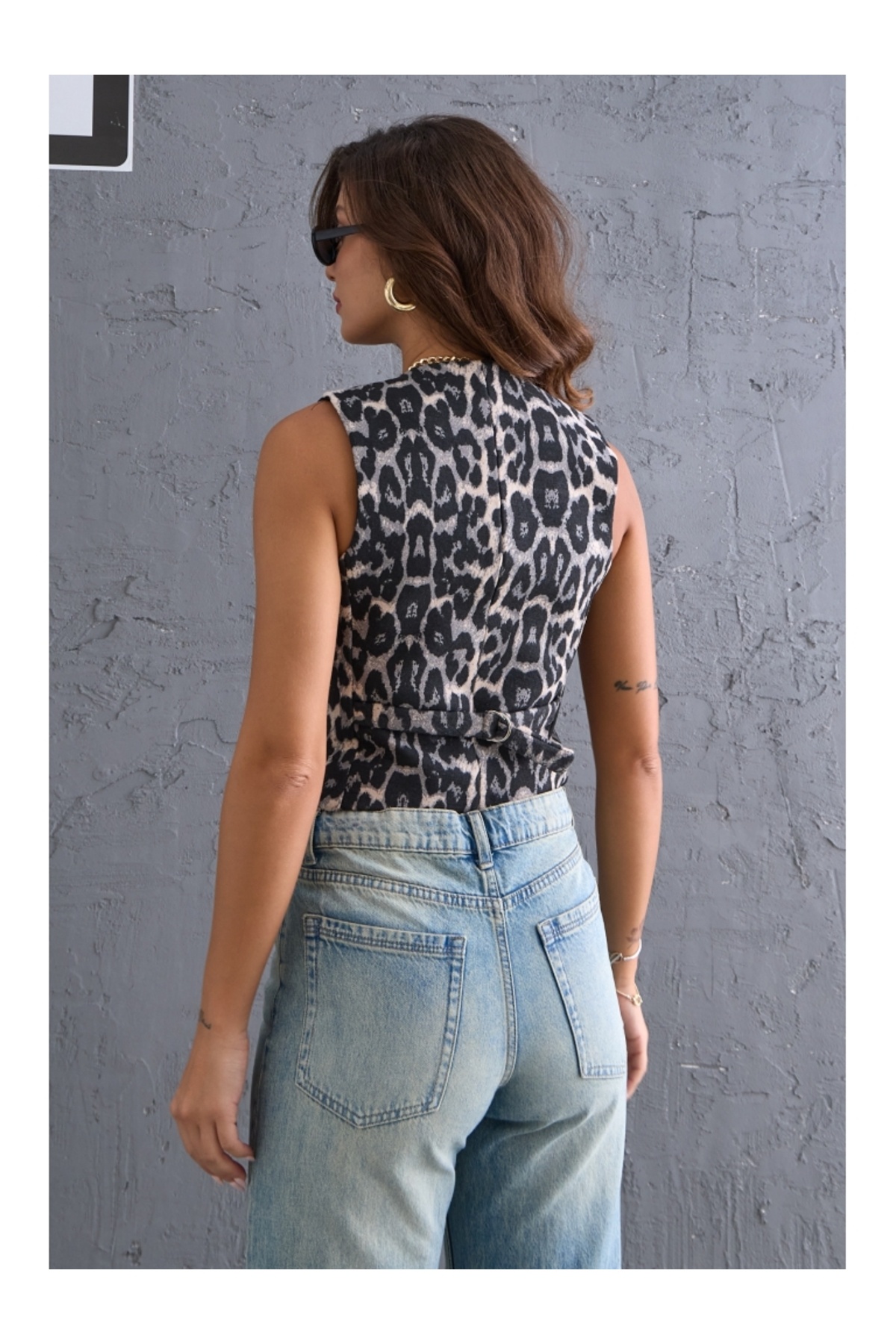 Gri Premium Leopar Kaşe Yelek Gri Premium Leopar Kaşe Yelek 60347 L