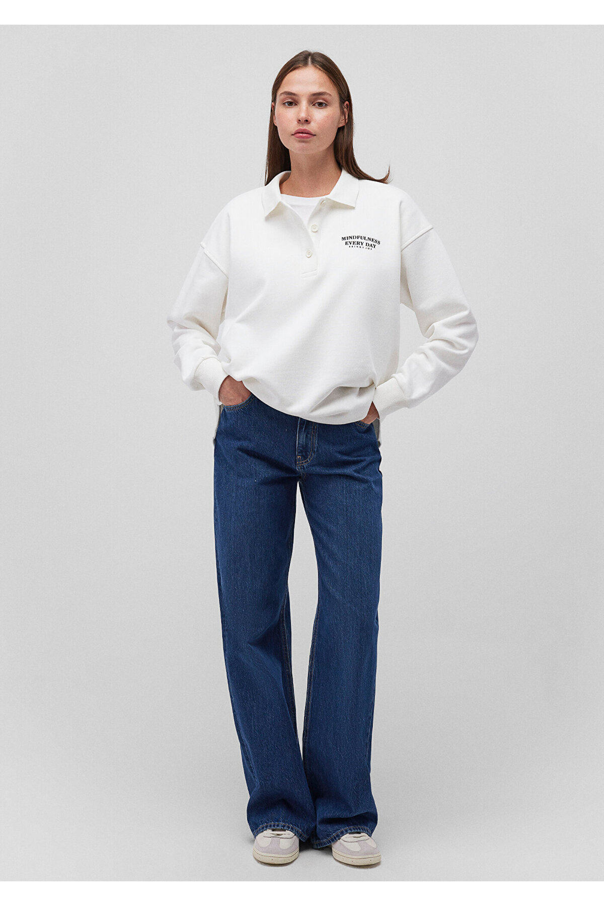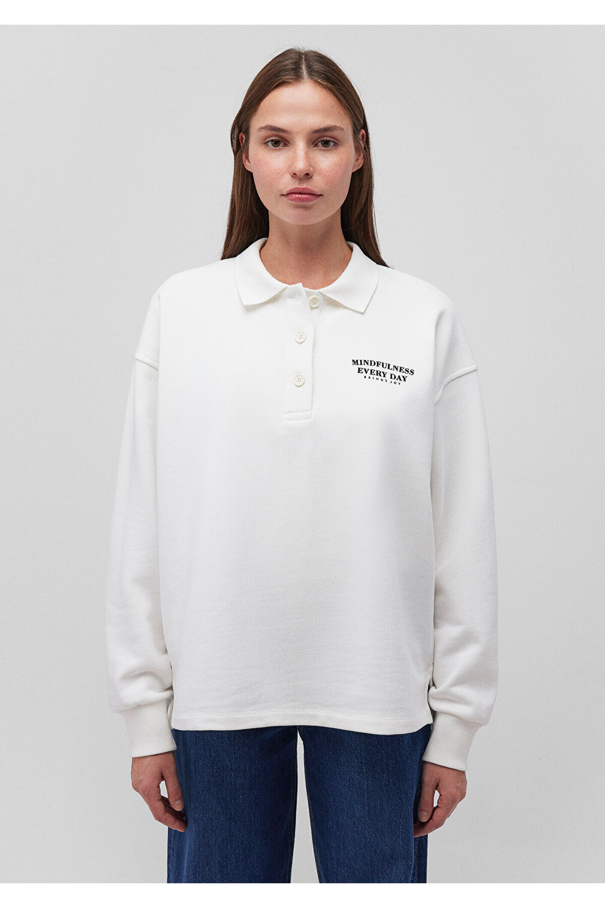 Beyaz Polo Tişört Loose Fit / Bol Rahat Kesim 1613020-70057 Beyaz Polo Tişört Loose Fit / Bol Rahat Kesim 1613020-70057 L