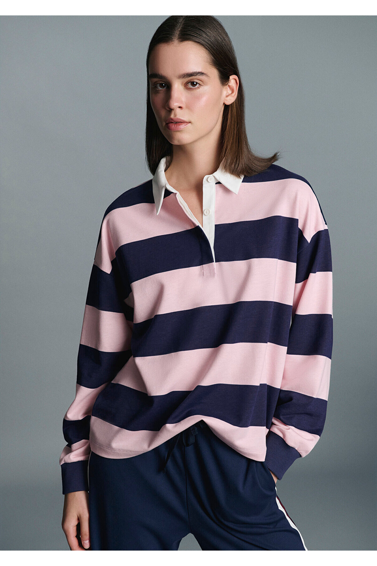 Uzun Kollu Mavi Çizgili Tişört Standart 1612781-89075 Uzun Kollu Mavi Çizgili Tişört Standart 1612781-89075 L