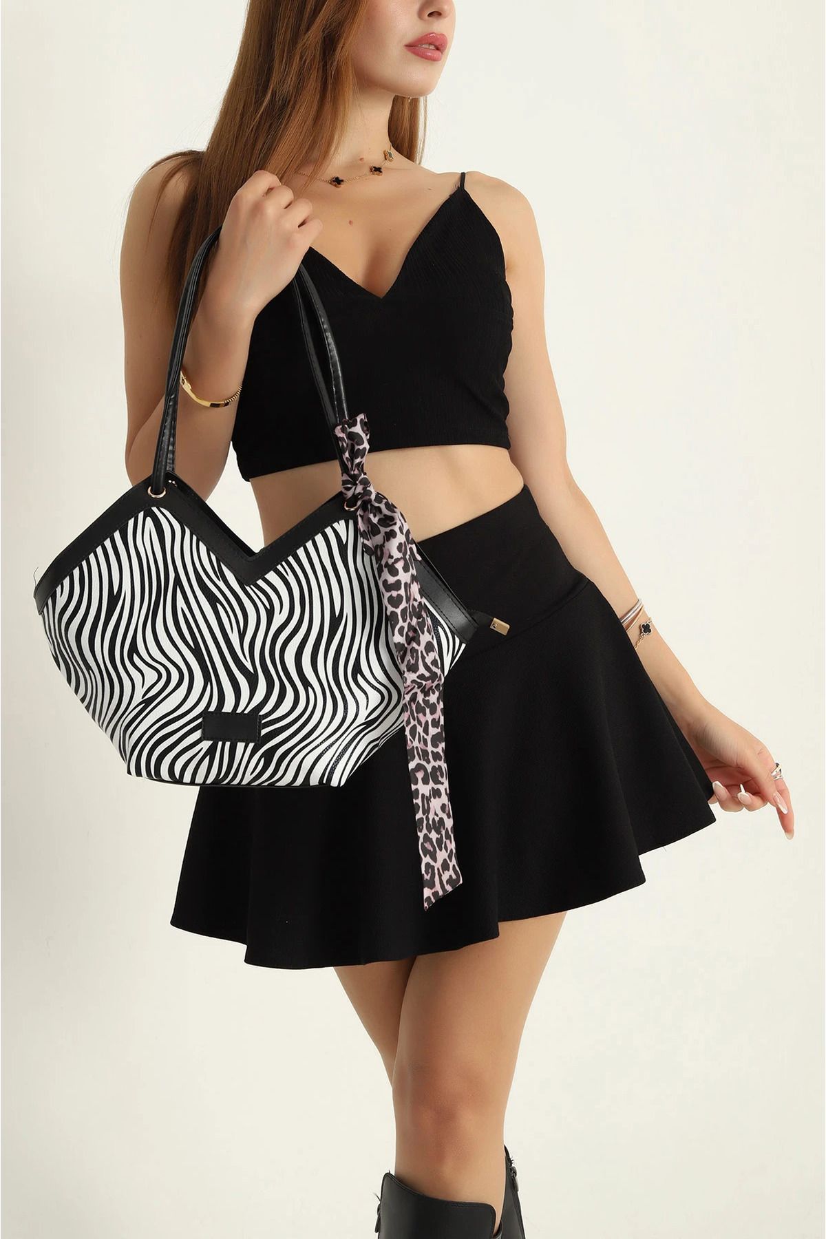 Kadın Zebra siyah beyaz çizgili - Askılı Fermuarlı El, Kol ve Omuz Çantası Kadın Zebra siyah beyaz çizgili - Askılı Fermuarlı El, Kol ve Omuz Çantası m10017 تک سایز
