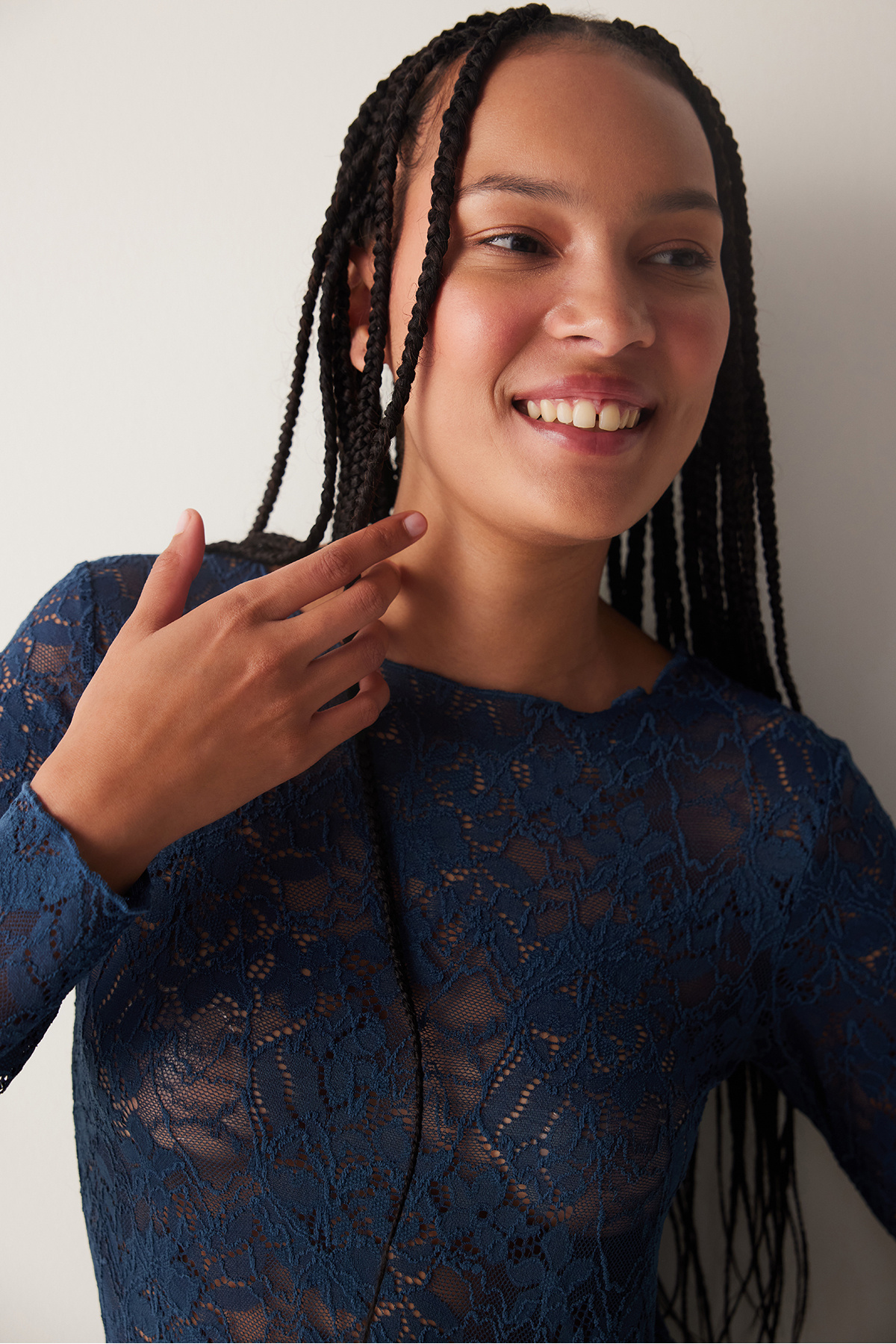 Lacivert Uzun Kollu Dantel Üst Lacivert Uzun Kollu Dantel Üst PH5JHNGS24SK-NV60 L