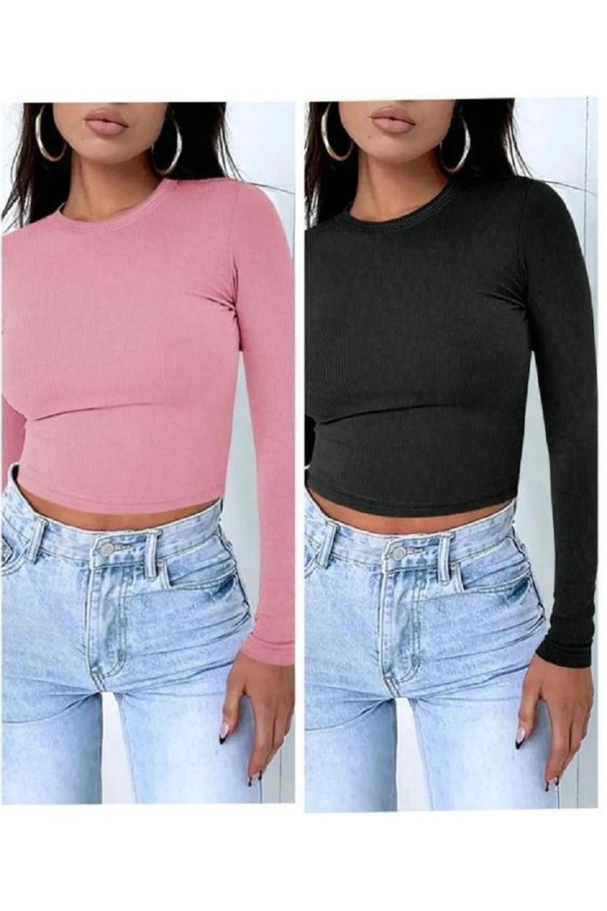 2'li Paket %100 Pamuklu Fitilli Kaşkorse Kare Yaka Uzun Kollu Crop Bluz 2'li Paket %100 Pamuklu Fitilli Kaşkorse Kare Yaka Uzun Kollu Crop Bluz 2947 L