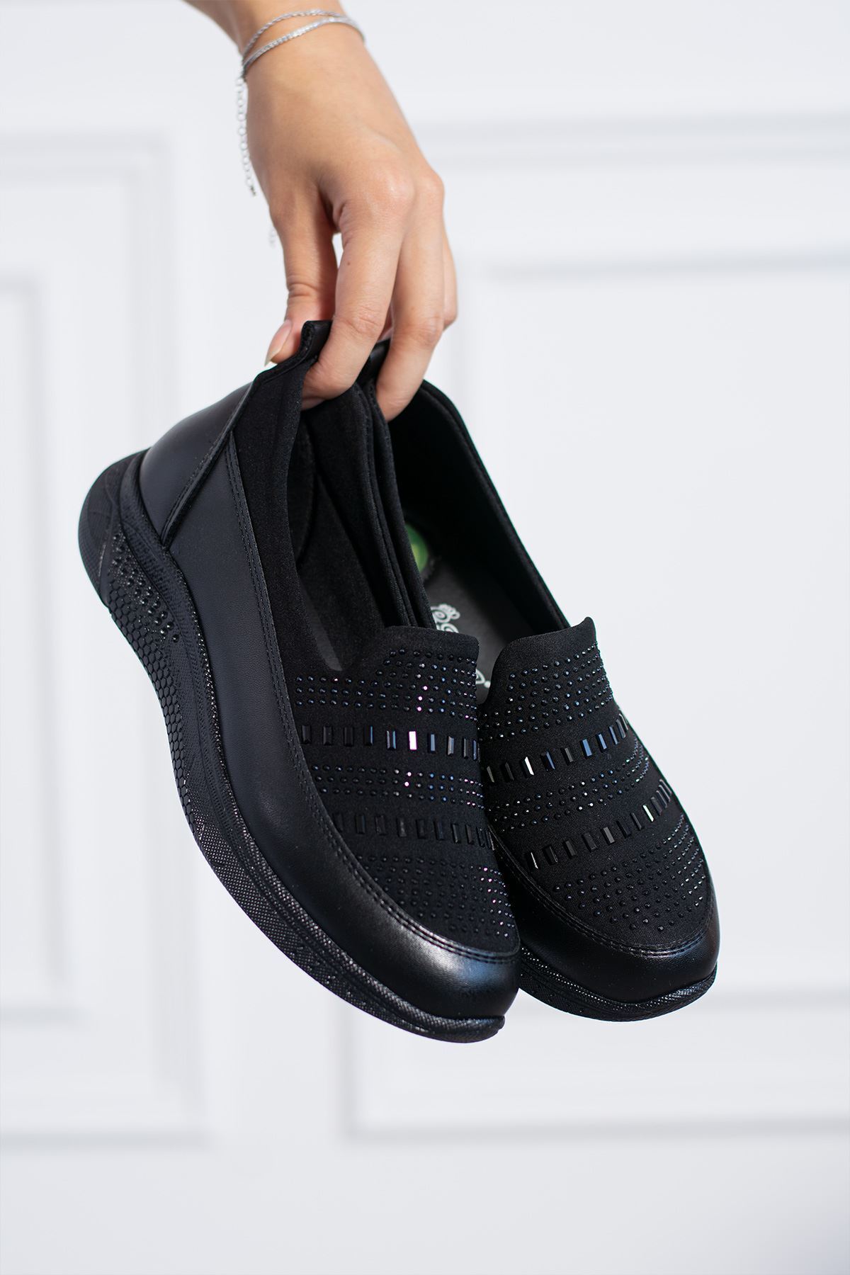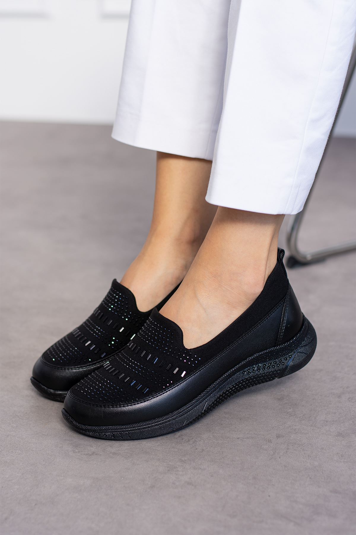 Kadın Siyah Poli Taban Kare Taşlı Rahat Ortopedik Spor Ayakkabısı Kadın Siyah Poli Taban Kare Taşlı Rahat Ortopedik Spor Ayakkabısı SKRS401 40