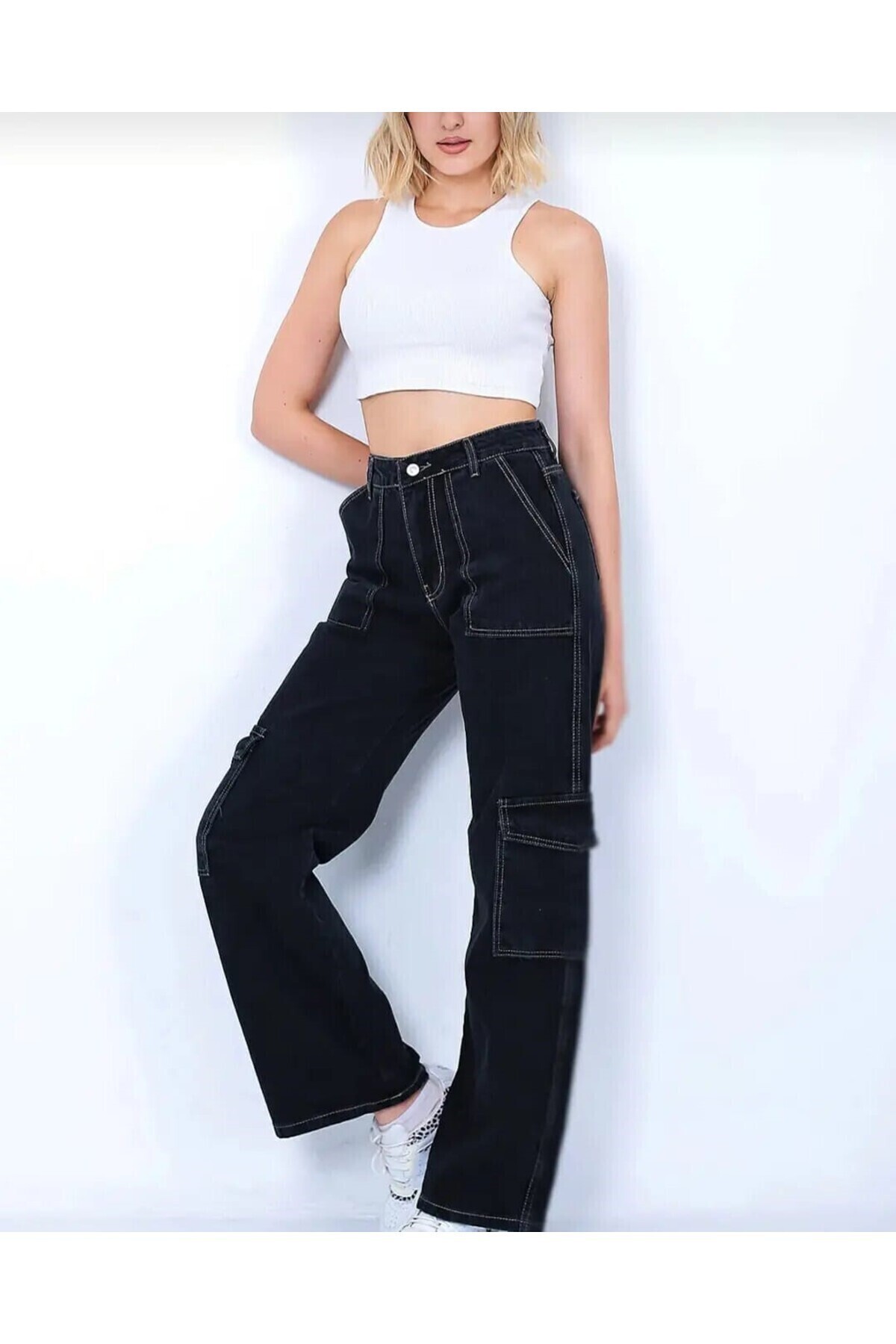 2021 Kadın Likralı Palazzo Jeans Kot Denim Pantolon - Siyah 2021 Kadın Likralı Palazzo Jeans Kot Denim Pantolon - Siyah PASS&PASS 2021 44/32