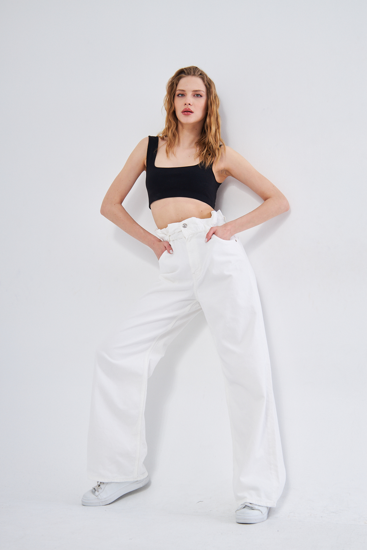 2020 Kadın Likrasız Palazzo Jeans Kot Denim Pantolon - Beyaz 2020 Kadın Likrasız Palazzo Jeans Kot Denim Pantolon - Beyaz PASS&PASS 2020 38/31