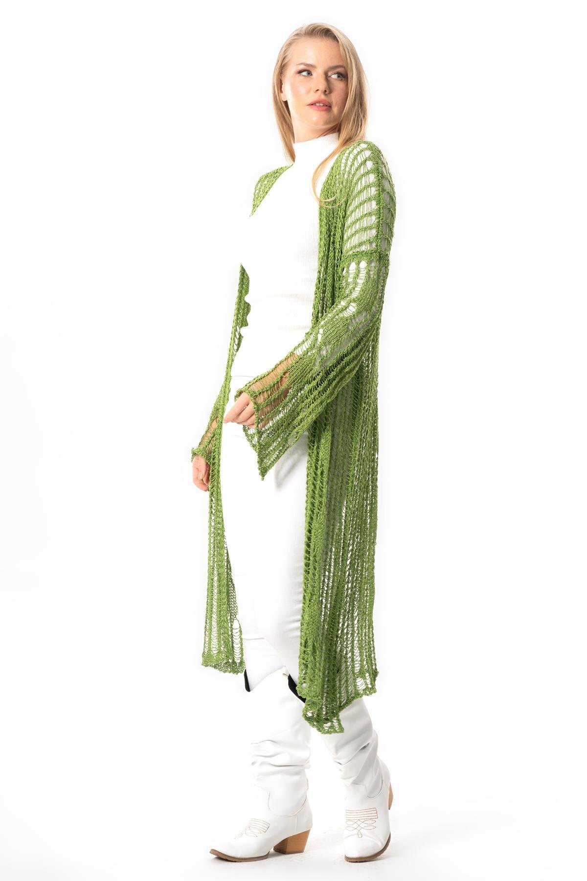 Uzun Kol Şölen Ajurlu Sonbahar ve Kışlık Uzun Otantik Triko Hırka Yeşil Ysl Uzun Kol Şölen Ajurlu Sonbahar ve Kışlık Uzun Otantik Triko Hırka Yeşil Ysl T10006 Standart