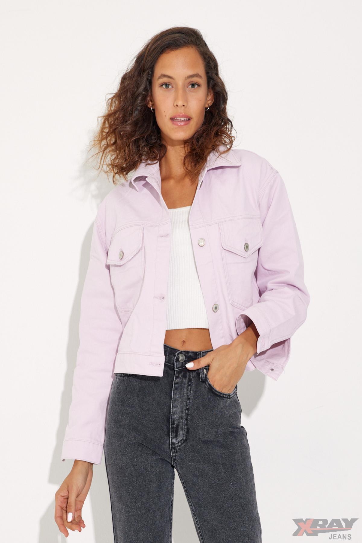 Kadın Düğmeli Kısa Polo Yaka Cepli Lila Kot Ceket Kadın Düğmeli Kısa Polo Yaka Cepli Lila Kot Ceket TYC2319437549B5901 40