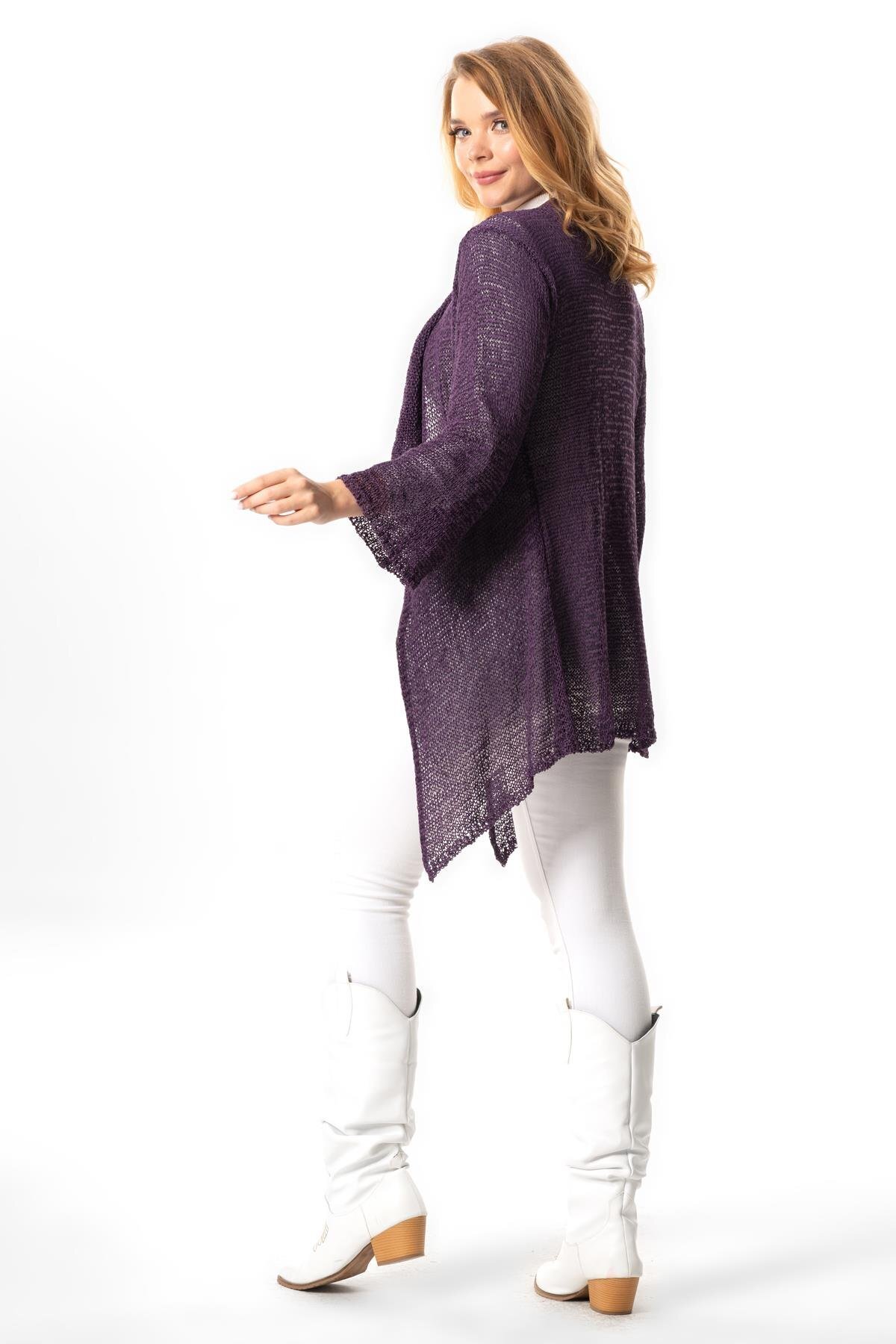 Uzun Kol Serenay Asimetrik Bağlama Detaylı Sonbahar ve Kışlık Triko Hırka Mor Mor Uzun Kol Serenay Asimetrik Bağlama Detaylı Sonbahar ve Kışlık Triko Hırka Mor Mor T21016 Standart