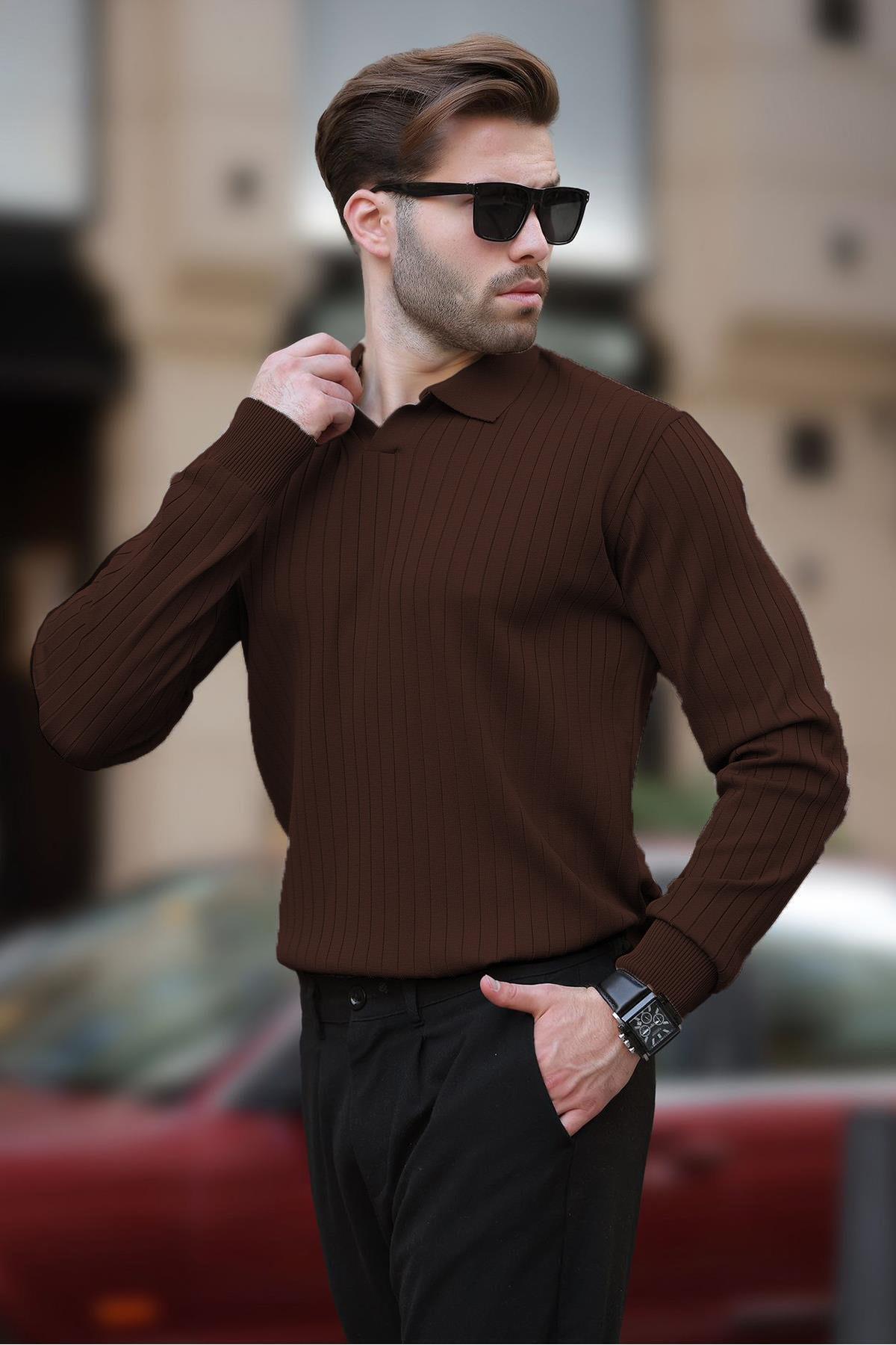 Beyaz Polo Yaka Çizgili Uzun Kollu Kazak 7239 Beyaz Polo Yaka Çizgili Uzun Kollu Kazak 7239 2XL