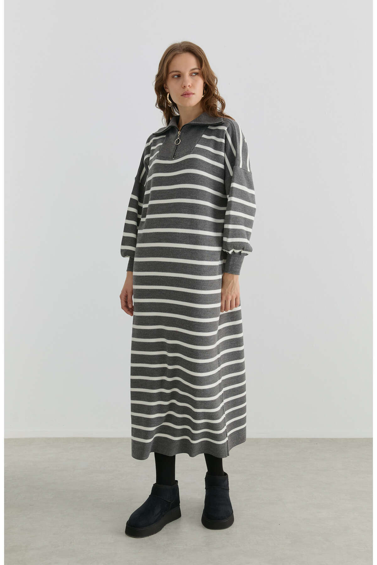 Çizgili Gri Triko Elbise Çizgili Gri Triko Elbise FA2024BS-TS0630 Standart