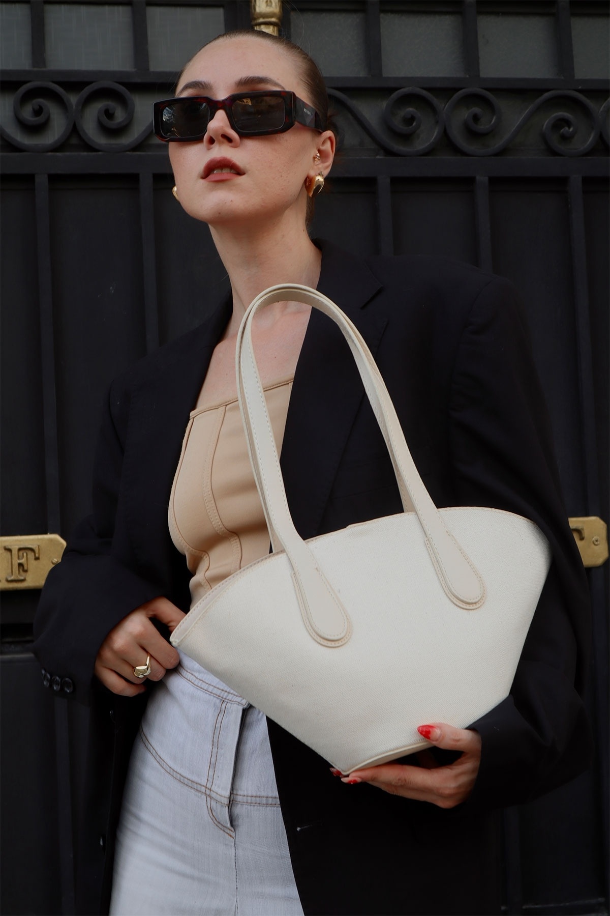 Lera Tote Bej Kanvas-Mat Çanta Lera Tote Bej Kanvas-Mat Çanta AURA-363 تک سایز