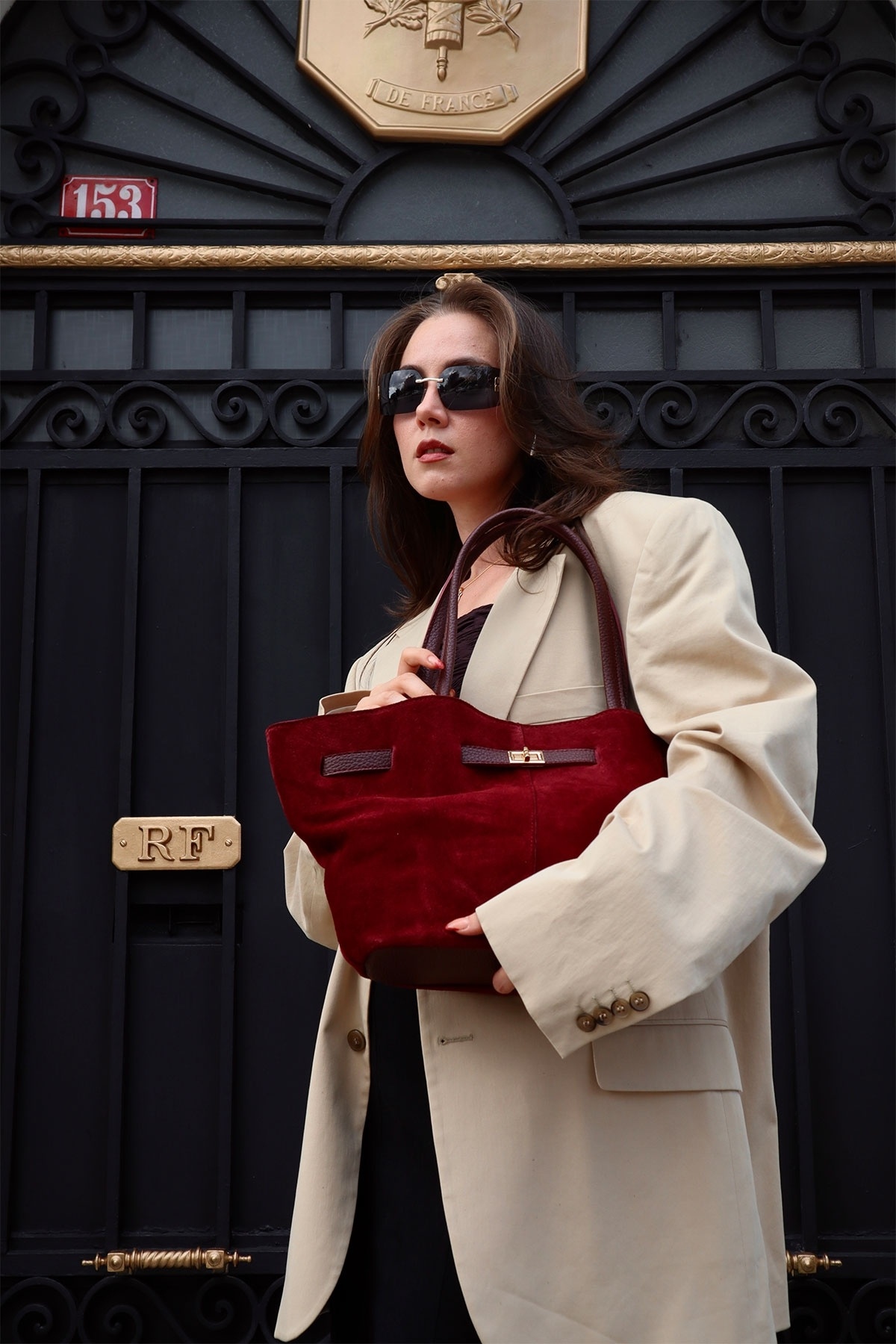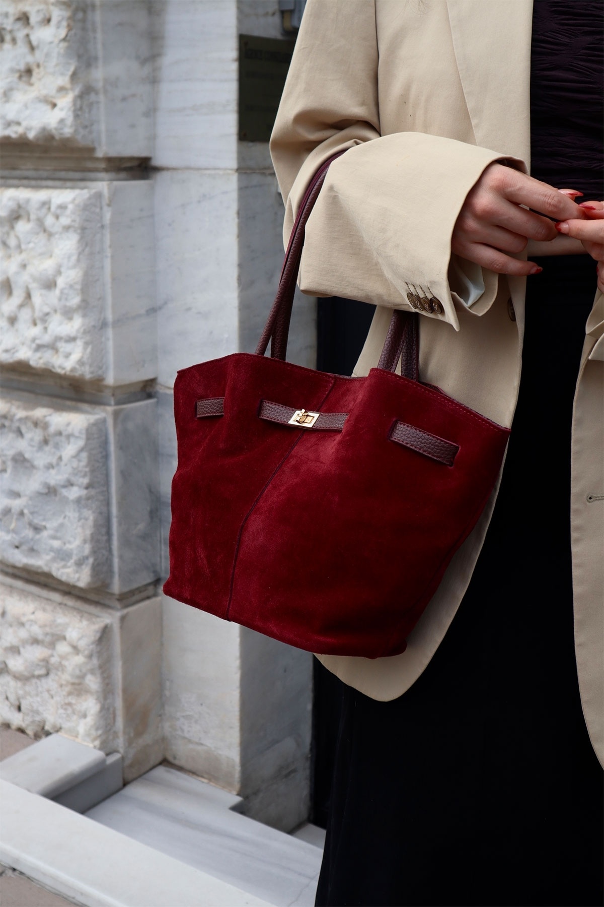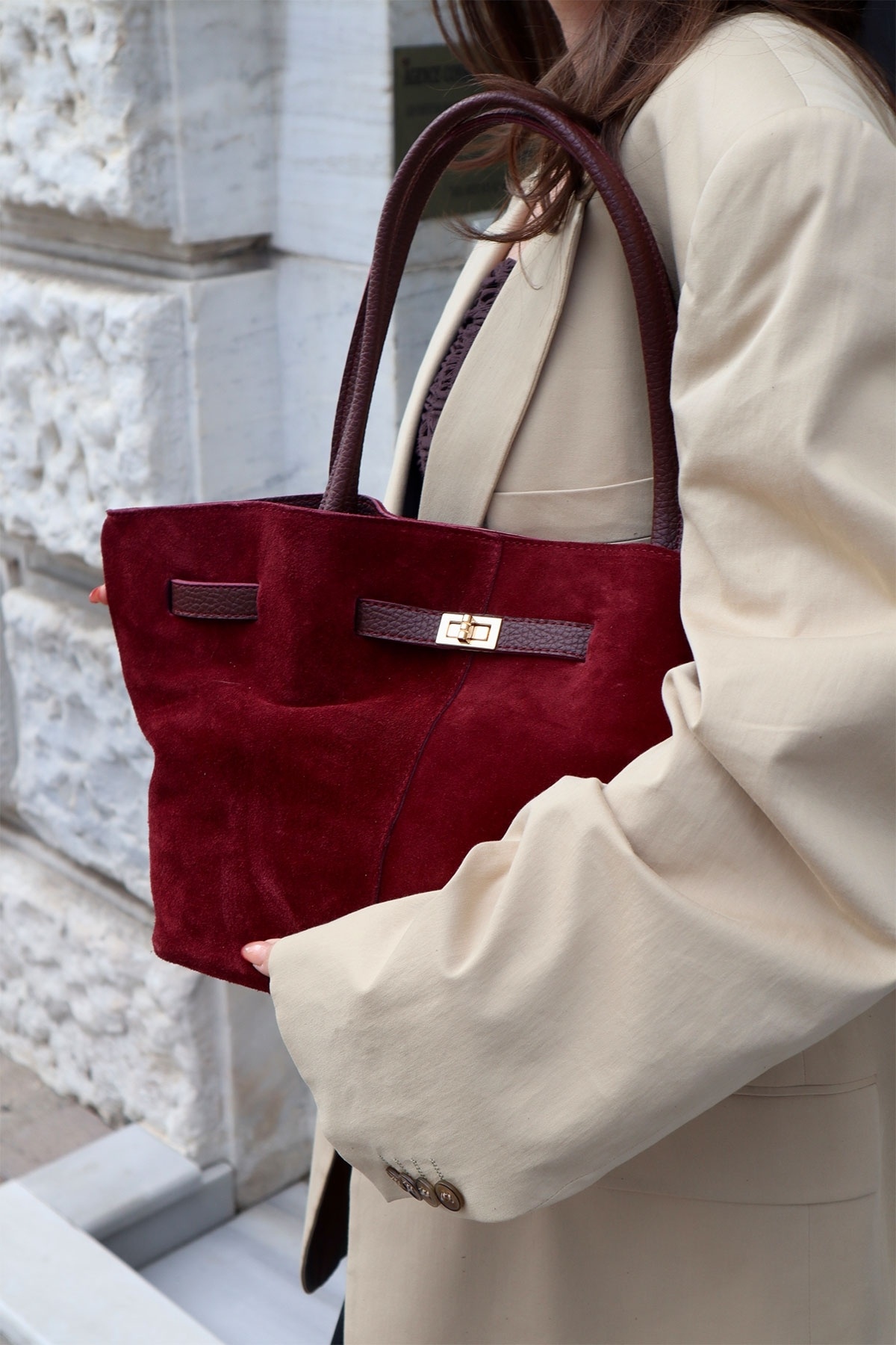 Elanor Kilit Toka Detaylı Bordo Gerçek Süet Çanta Elanor Kilit Toka Detaylı Bordo Gerçek Süet Çanta AURA-368 تک سایز