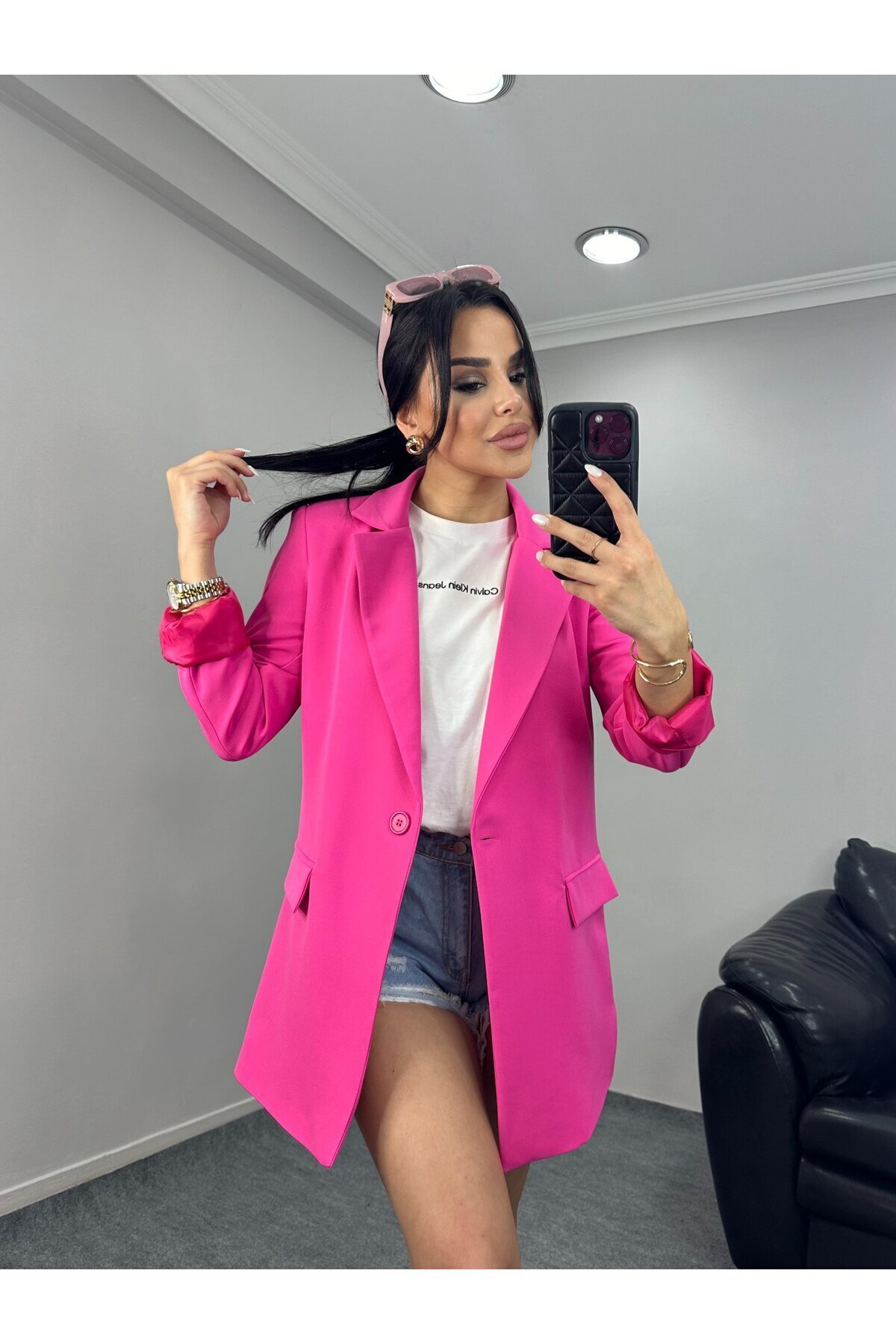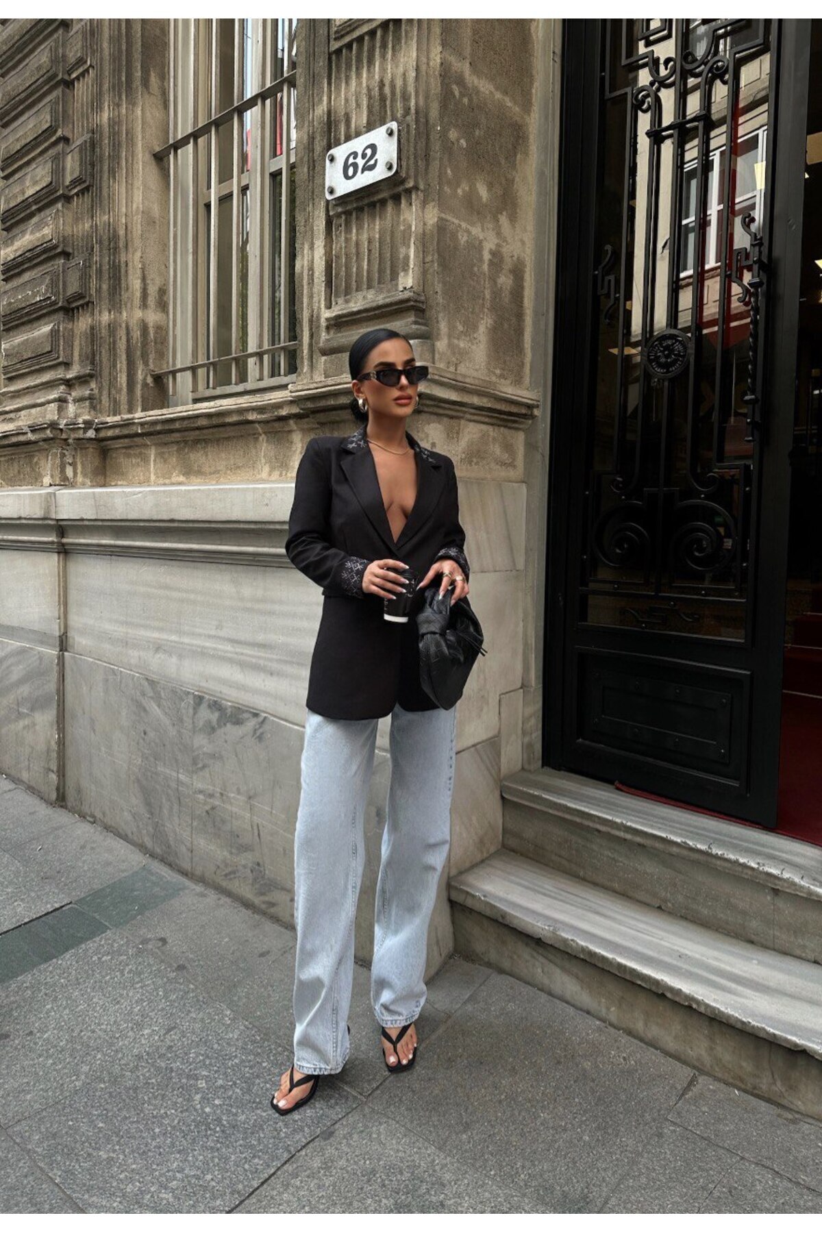 Yakaları Ve Kolları Nakışlı Blazer Ceket - Beyaz Yakaları Ve Kolları Nakışlı Blazer Ceket - Beyaz SKU: SBE12077 XL
