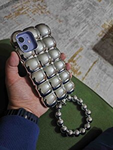 Iphone 12 ve 12 Pro (6.1 inç) Uyumlu Bileklik Charm Aksesuarlı Parlak Nikelaj Gümüş Lux Kılıf Iphone 12-12 Pro Nikelaj Kılıf