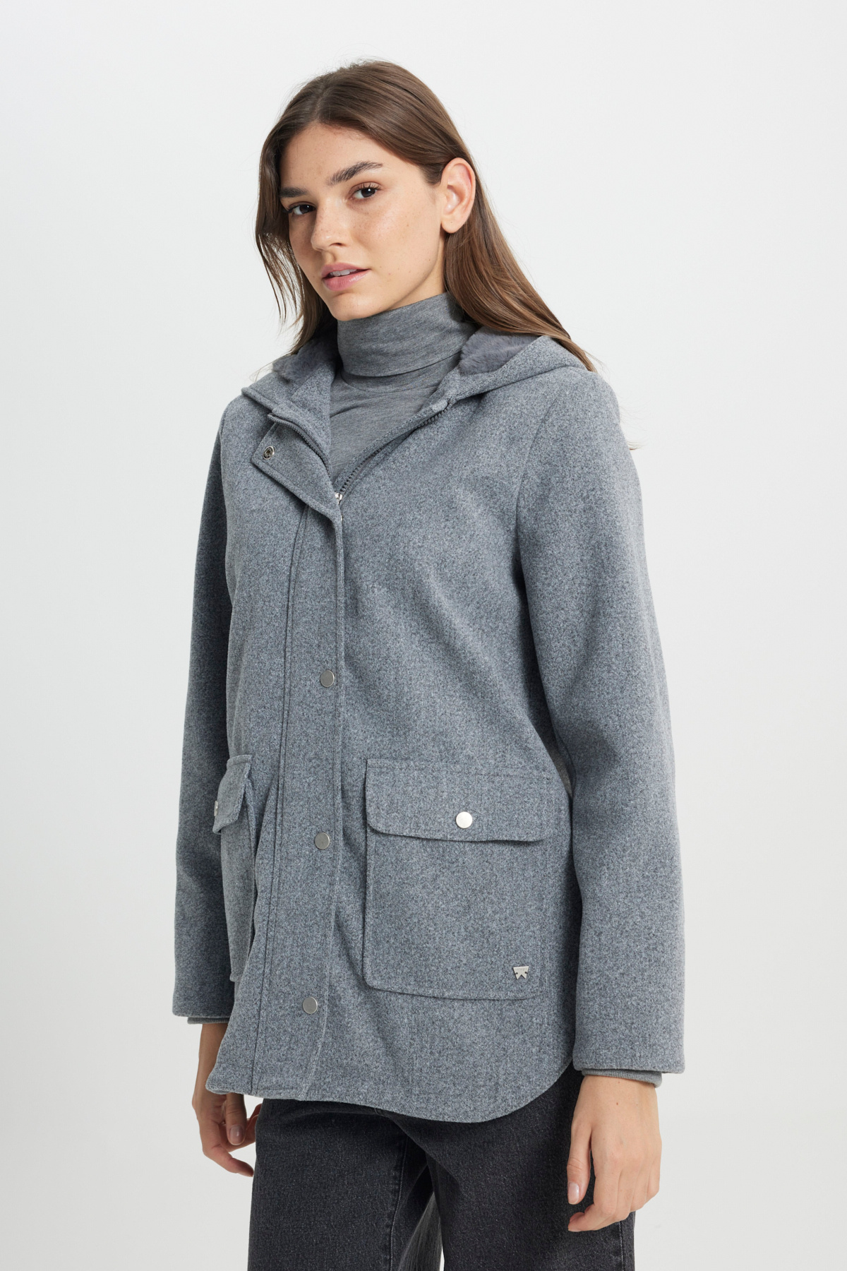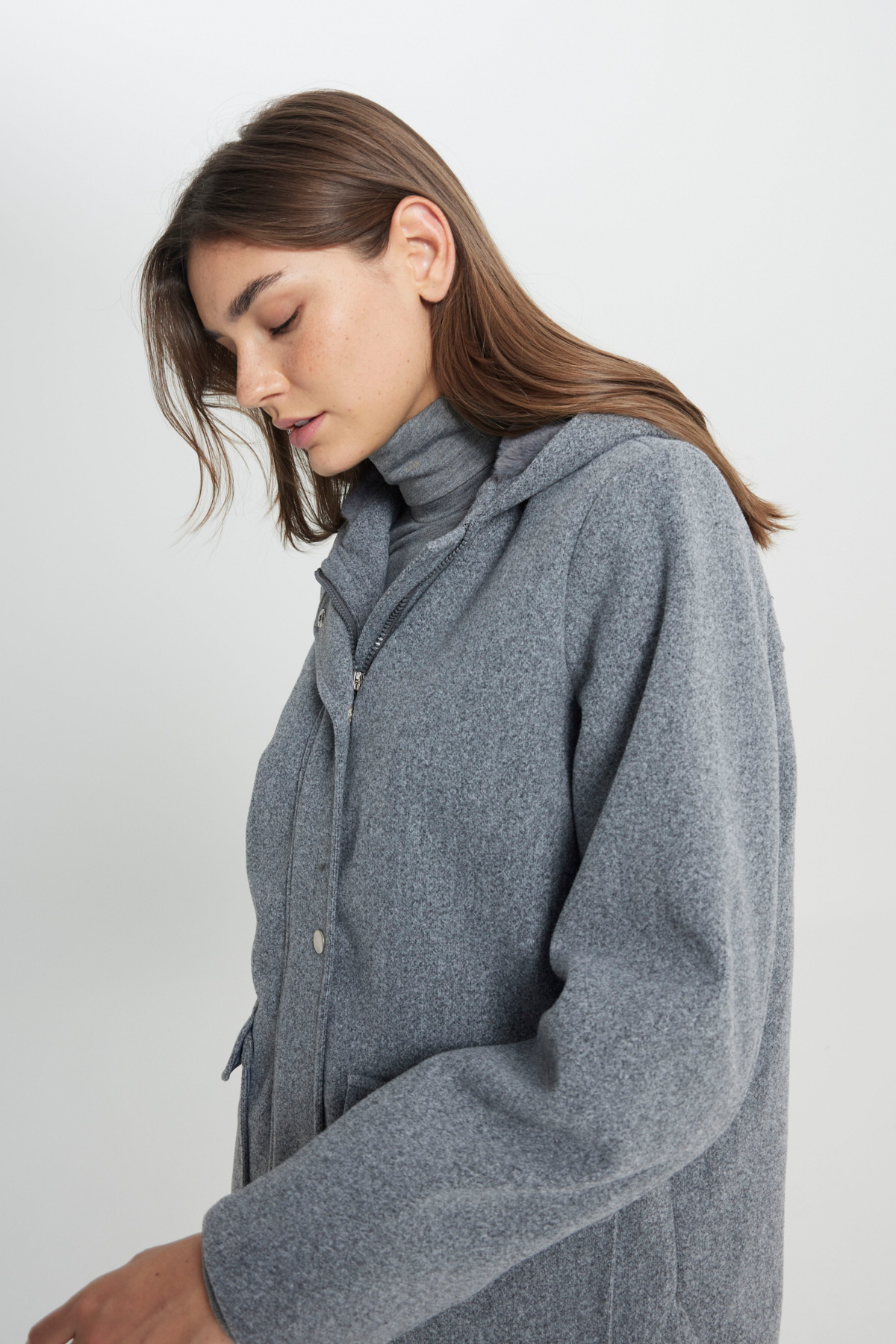 Regular Fit Normal Kesim Kapüşonlu Kadın Cep Detaylı Gri Parka Ceket Regular Fit Normal Kesim Kapüşonlu Kadın Cep Detaylı Gri Parka Ceket W242742 L