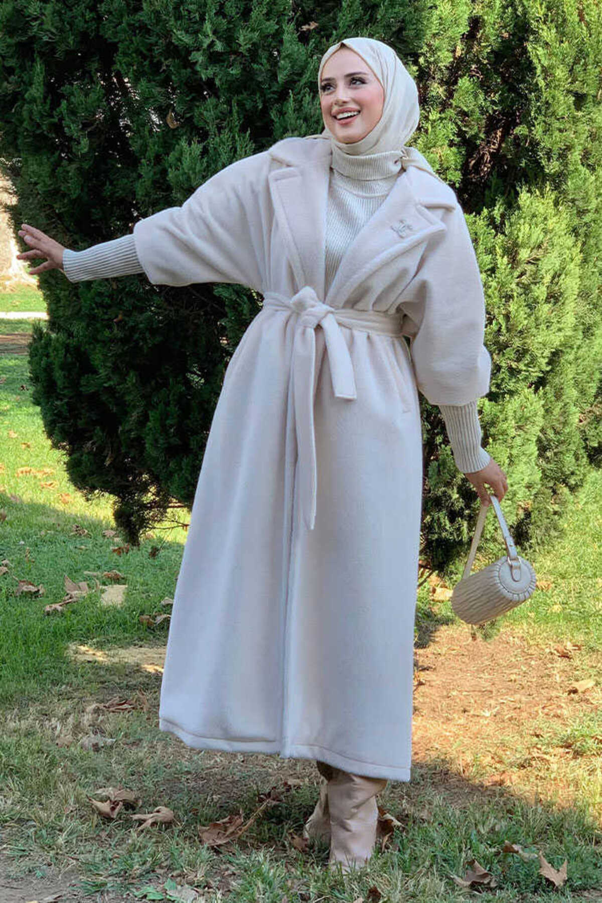 Bel Kuşaklı Yaka Taş Bronş Detaylı Uzun Kaban 7923 Ekru Bel Kuşaklı Yaka Taş Bronş Detaylı Uzun Kaban 7923 Ekru TYCF07D9B37603A202 تک سایز