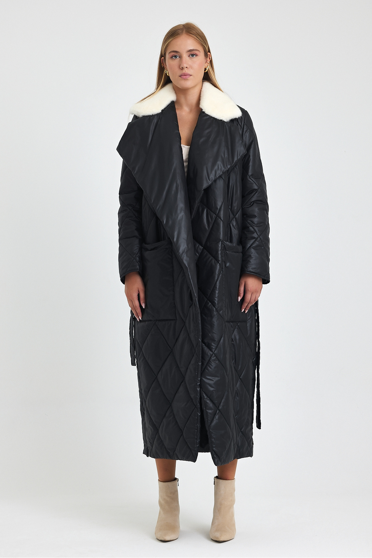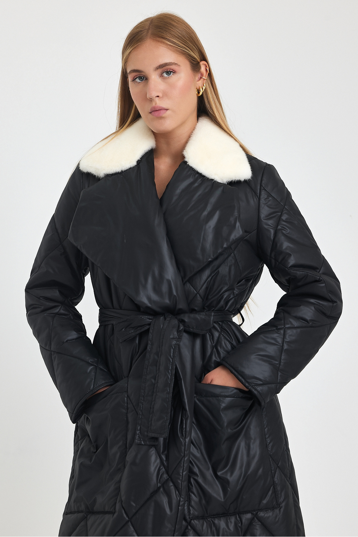 Siyah Su-geçirmez Şişme Kaban Yaka Vizon (Çift Taraflı giyilebilir) Siyah Su-geçirmez Şişme Kaban Yaka Vizon (Çift Taraflı giyilebilir) CUM1 2XL