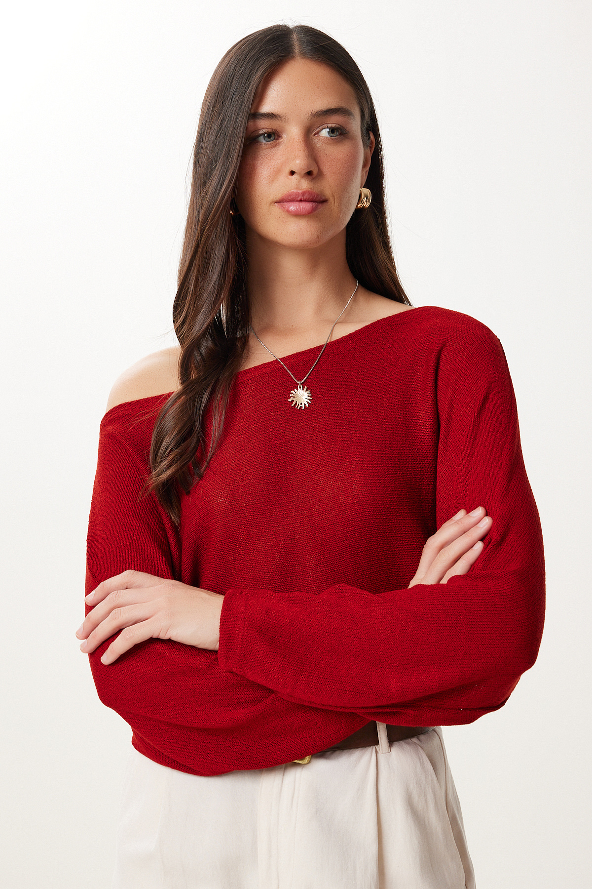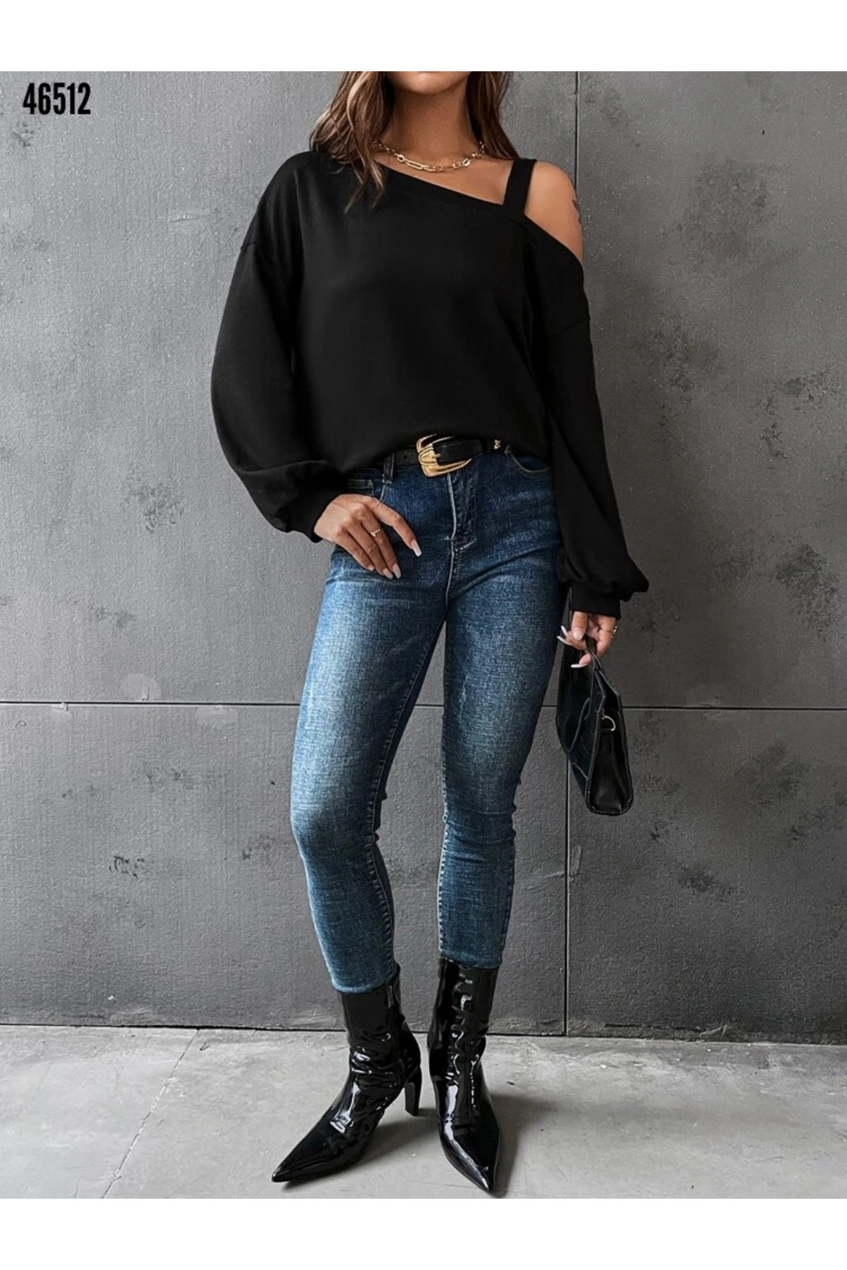 Kadın uzun kollu tek omuzu açık siyah viskon bluz Kadın uzun kollu tek omuzu açık siyah viskon bluz YKD-MANUEL-81412 2XL-3XL