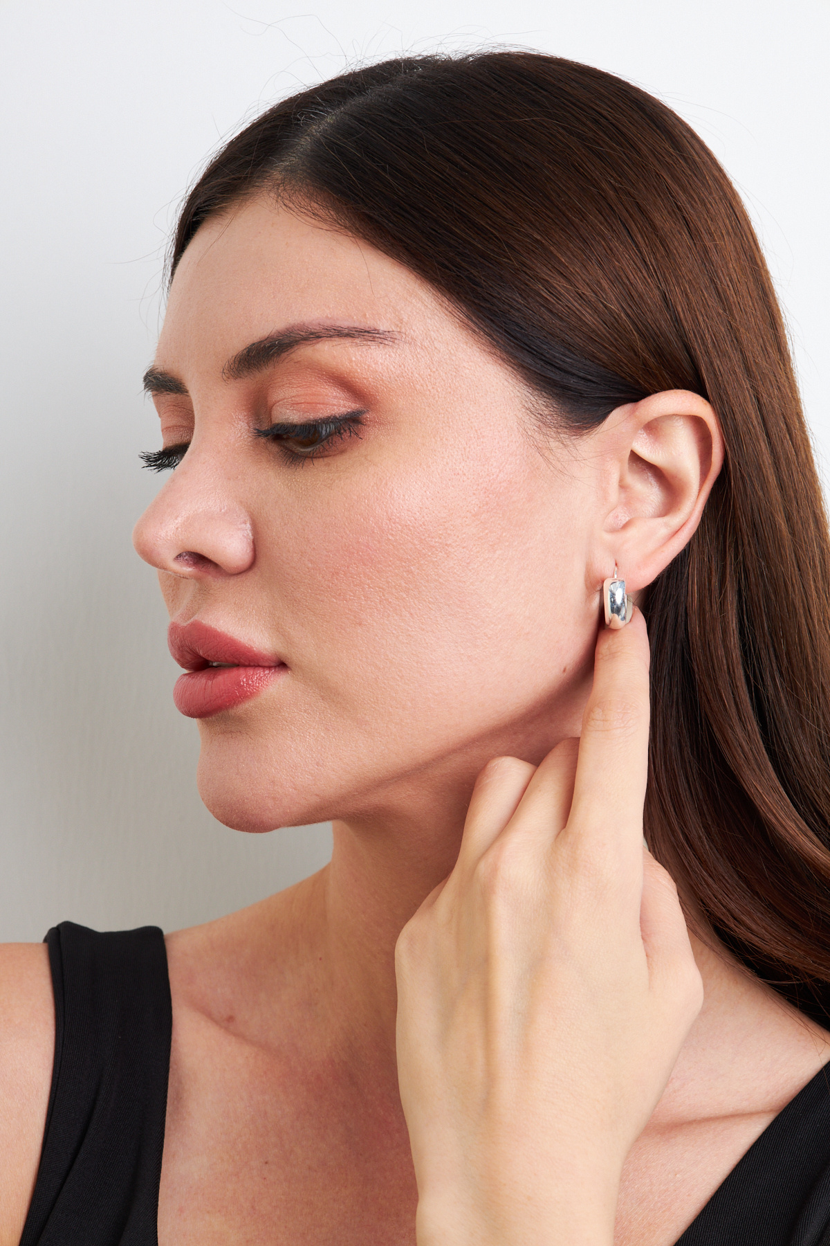 Plated Bombeli Küçük Halka 925 Ayar Gümüş Kadın Küpe VKP-7446 Plated Bombeli Küçük Halka 925 Ayar Gümüş Kadın Küpe VKP-7446 تک سایز