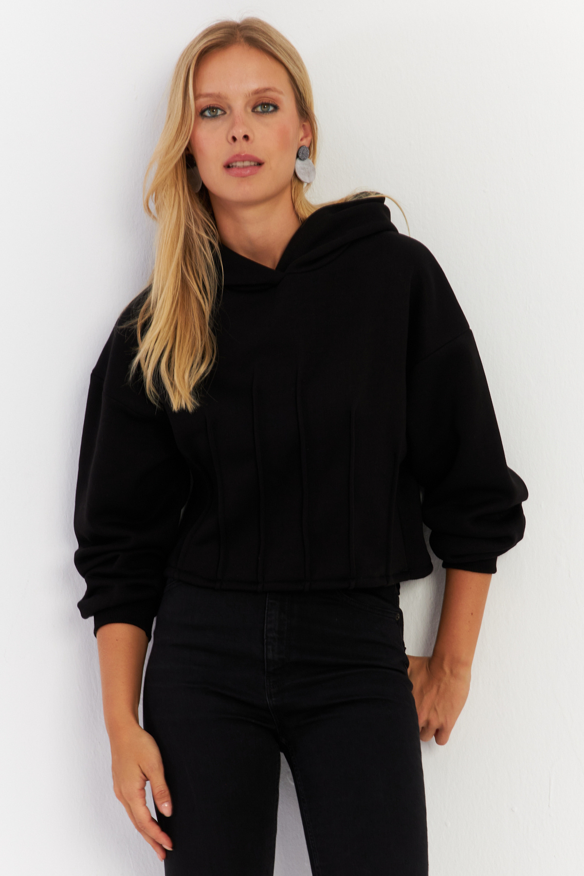 Kadın Camel-Siyah Renk Bloklu Kapüşonlu Sweatshirt DA148 Kadın Camel-Siyah Renk Bloklu Kapüşonlu Sweatshirt DA148 L