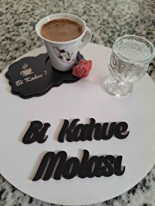 Bi Kahve Molası Sunum Tepsisi ve Bi Kahve Bardak Altlığı Bi Kahve Molası Sunum Tepsisi ve Bi Kahve Bardak Altlığı snm001 تک سایز