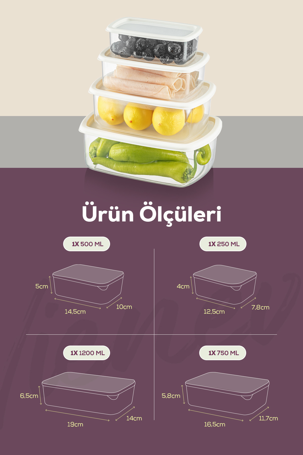 4'lü Hava Geçirmez Saklama Kabı Seti Gri 1x(250-500-750-1200 ML) 4'lü Hava Geçirmez Saklama Kabı Seti Gri 1x(250-500-750-1200 ML) SYBOX4LUKRSK تک سایز