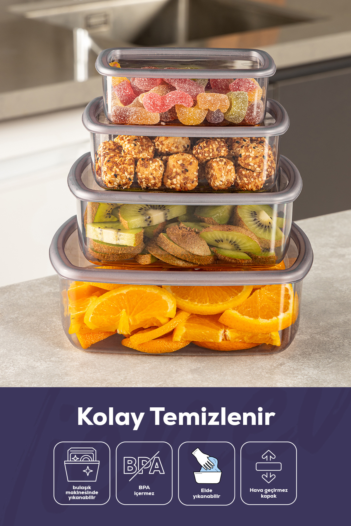 4'lü Hava Geçirmez Saklama Kabı Seti Antrasit 1x(250-500-750-1200 ML) 4'lü Hava Geçirmez Saklama Kabı Seti Antrasit 1x(250-500-750-1200 ML) SYBOX4LUKRSK تک سایز